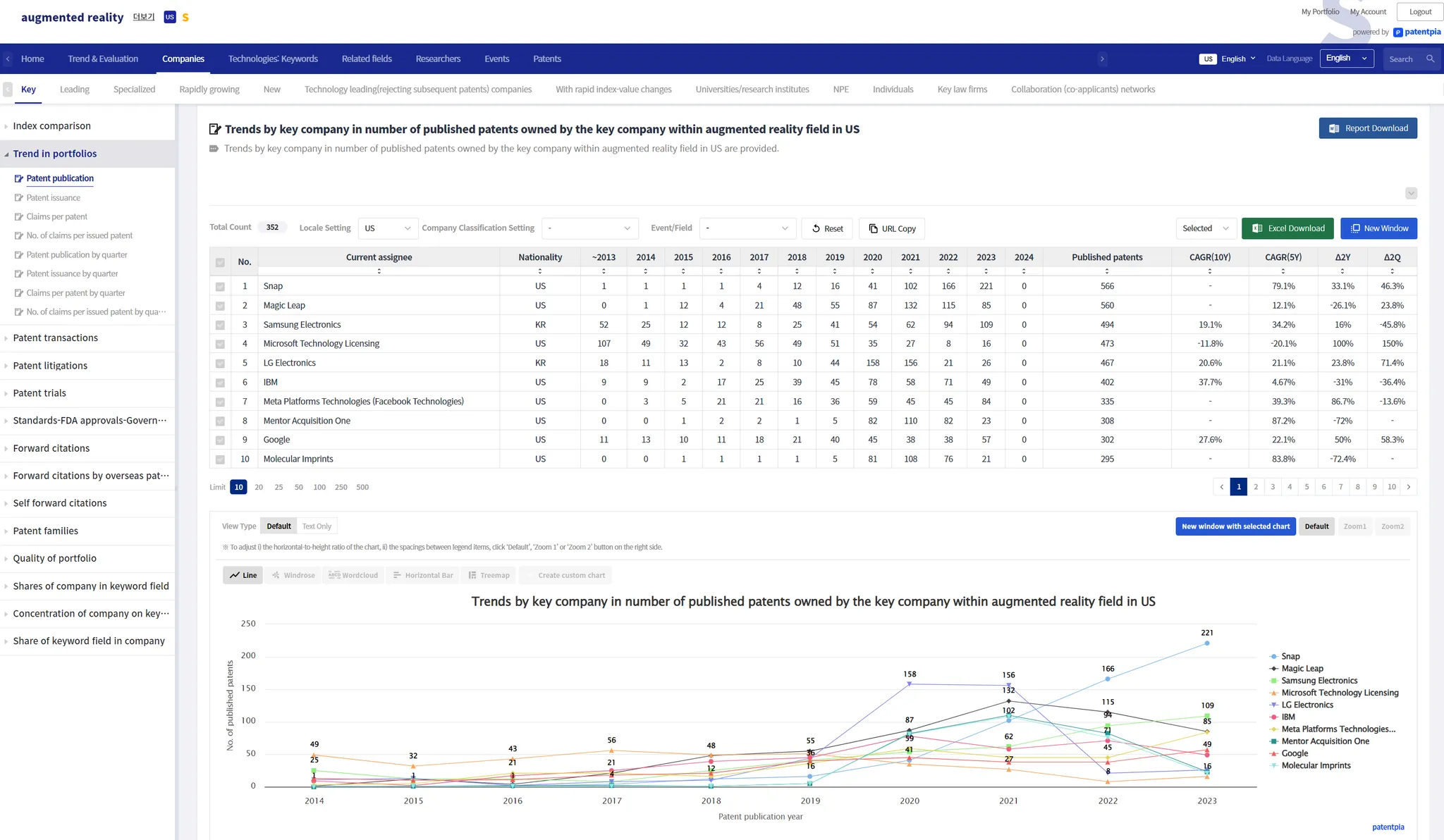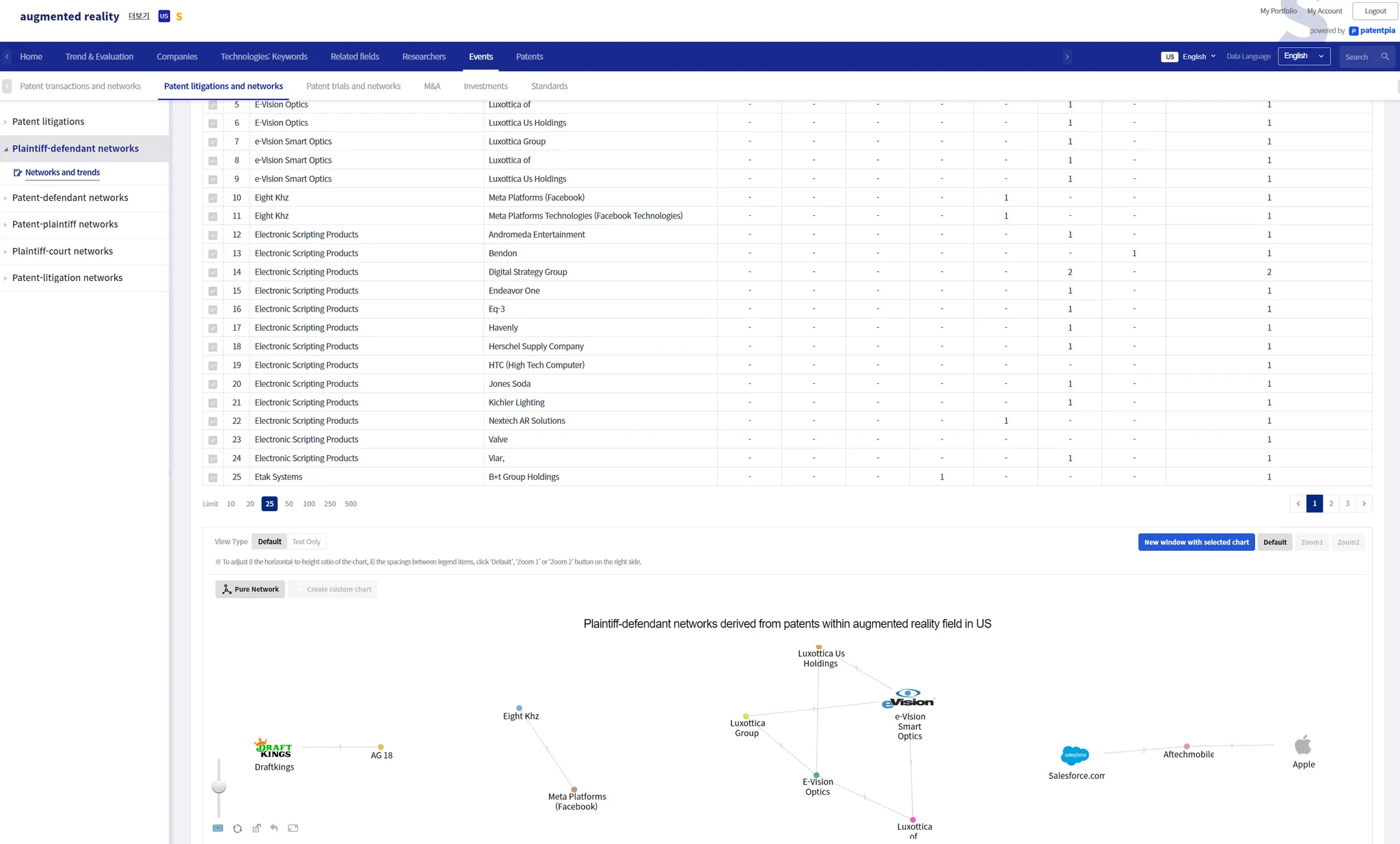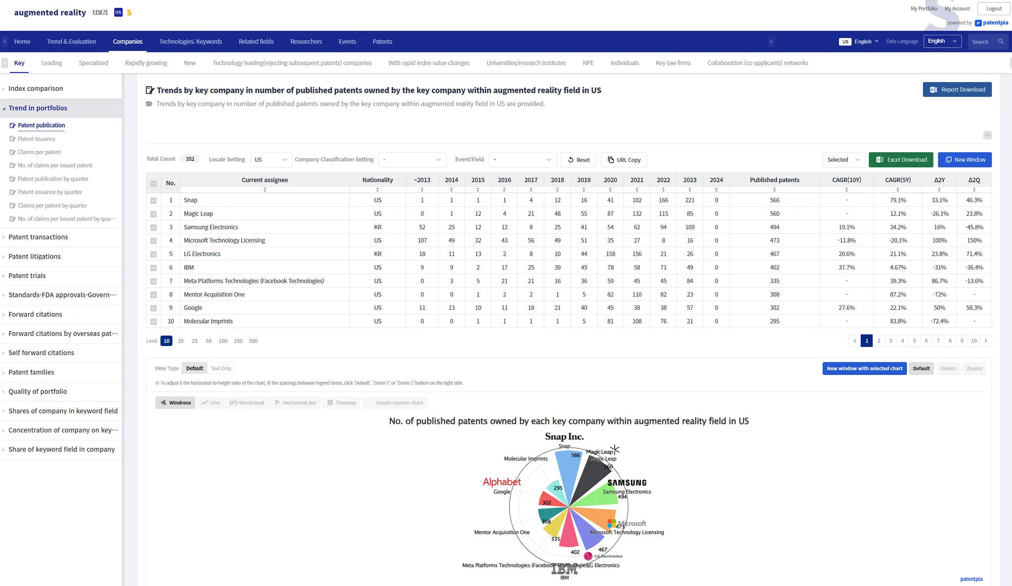 Here is an example of chart contents utilizing PatentPia GoldenCompass with Apple as the interested company and augmented reality of Apple as the keyword of interest. If you click on the chain(link) marks that are attached to each item in the above utilization map, the example page will open in a new window.
