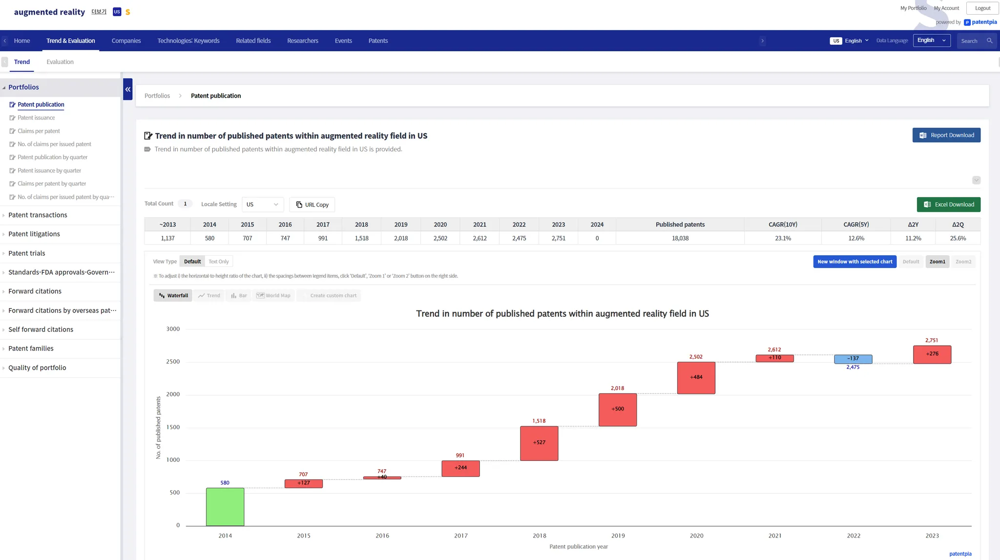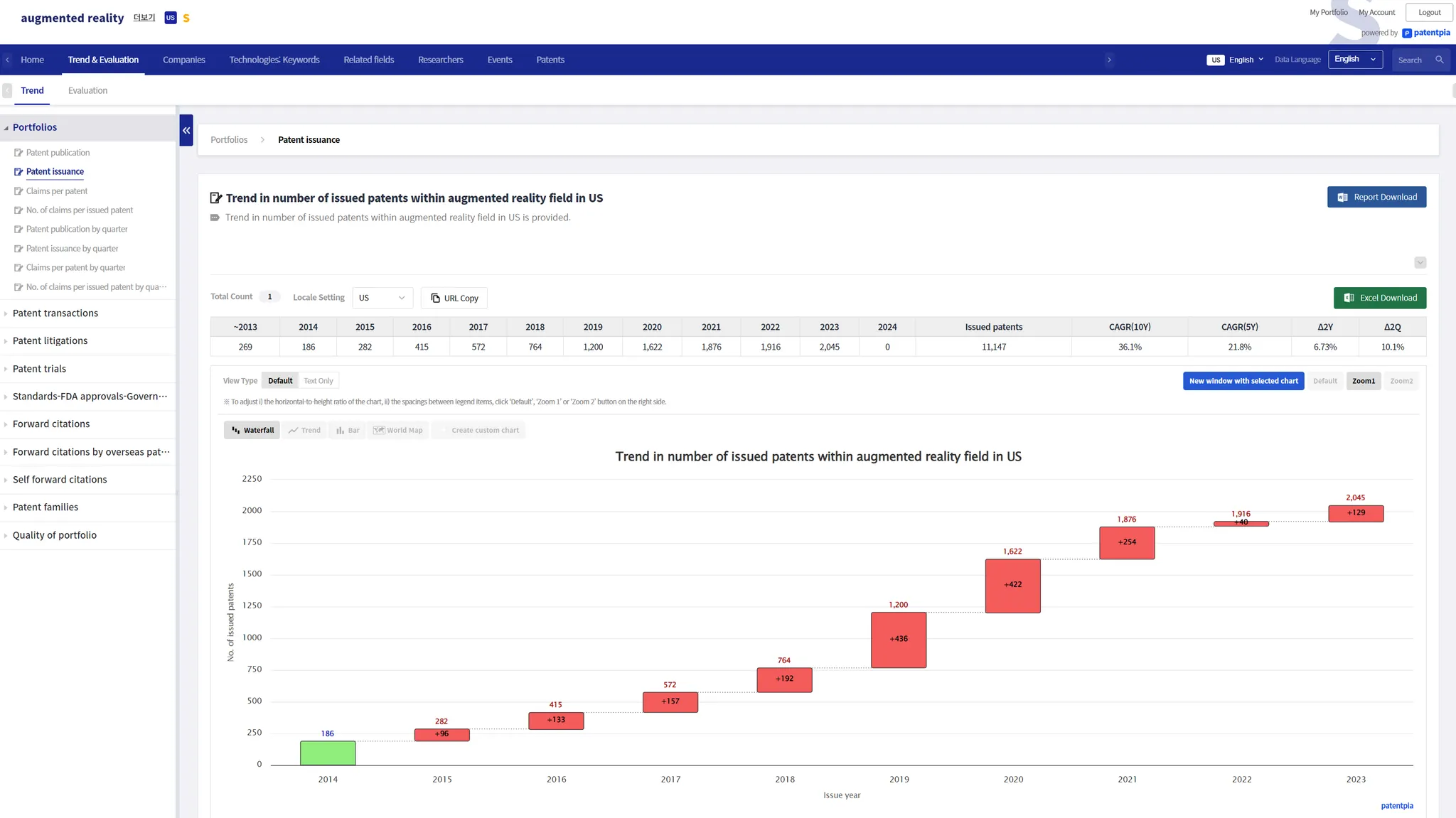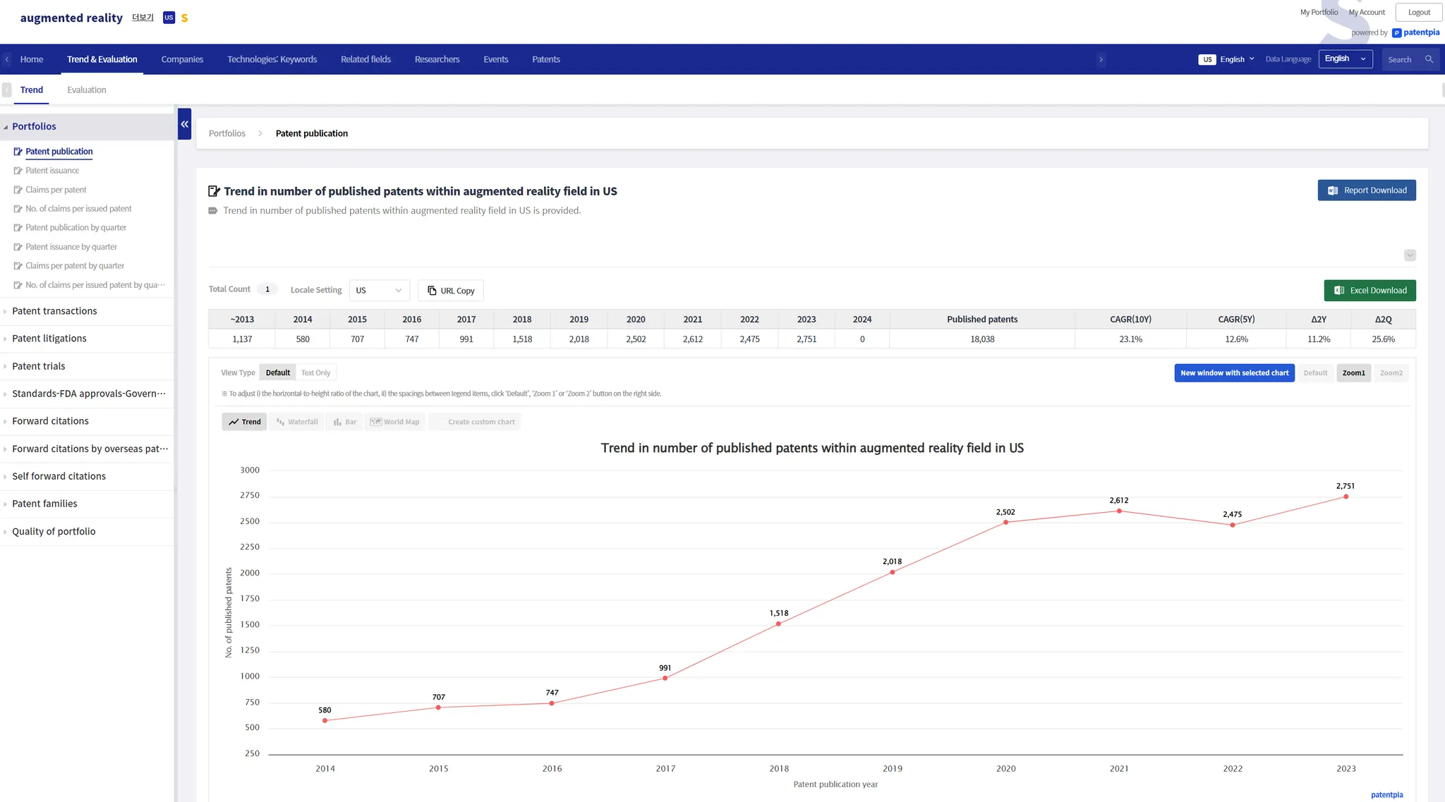 Here is an example of chart contents utilizing PatentPia GoldenCompass with Apple as the interested company and augmented reality of Apple as the keyword of interest. If you click on the chain(link) marks that are attached to each item in the above utilization map, the example page will open in a new window.