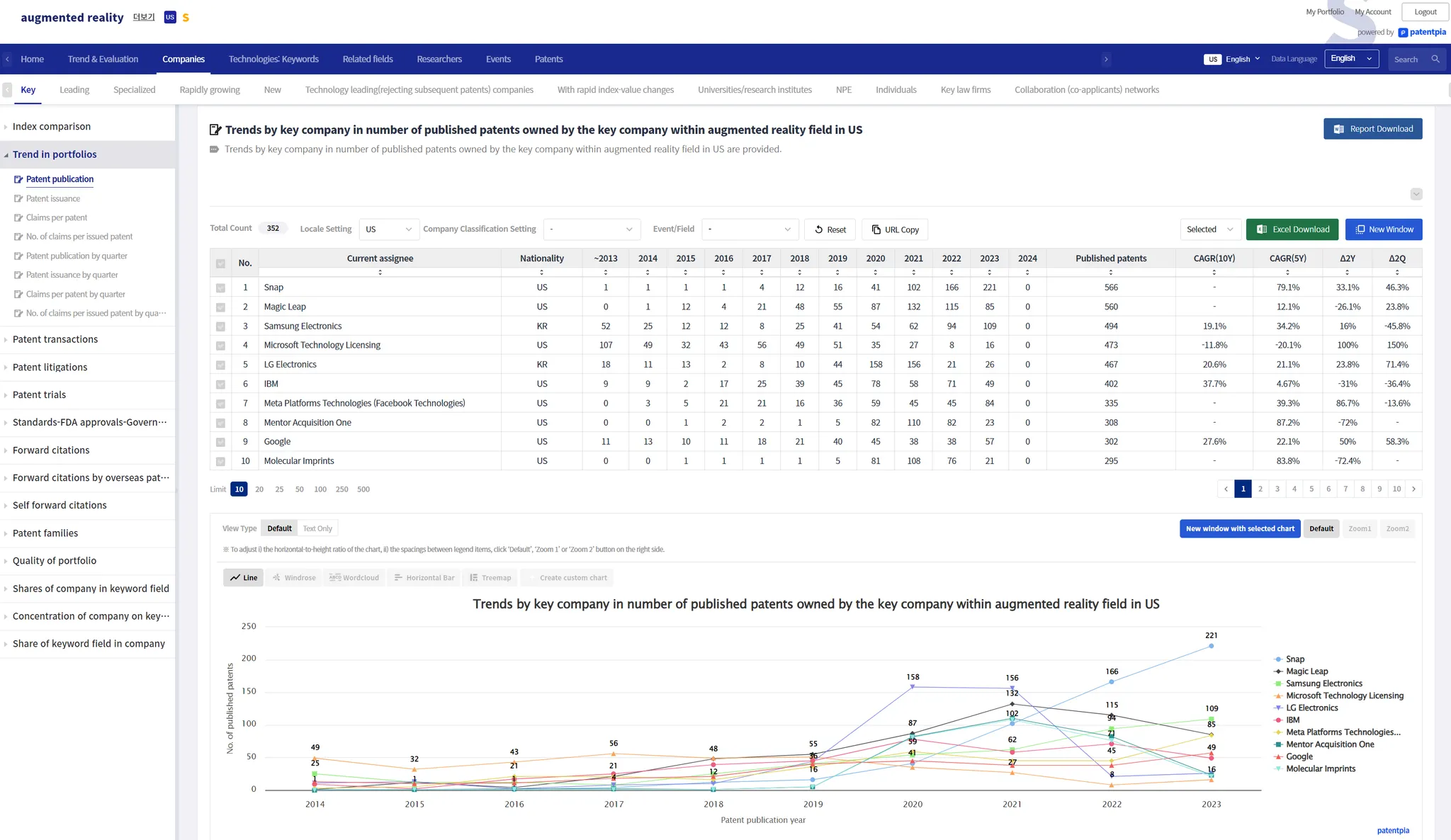 Based on the changed analysis results, only companies of the selected nationality appear in charts, etc. Reports, etc. will also be composed of only companies of the selected nationality.
