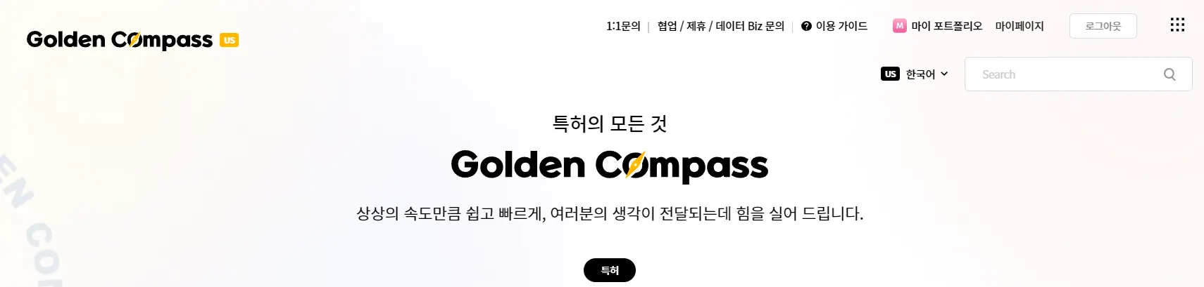 아래와 같은 GoldenCompass 메인 화면의 우측 최상단에는 검색어 입력창이 있습니다.