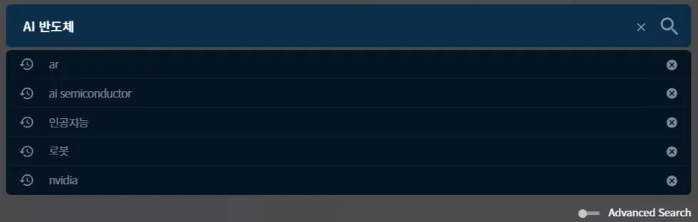 검색어 입력창을 클릭하면 검색어를 입력할 수 있는 UI가 나타납니다.