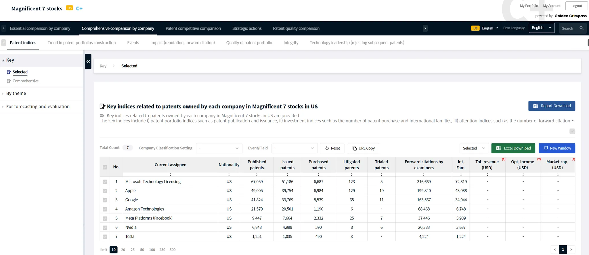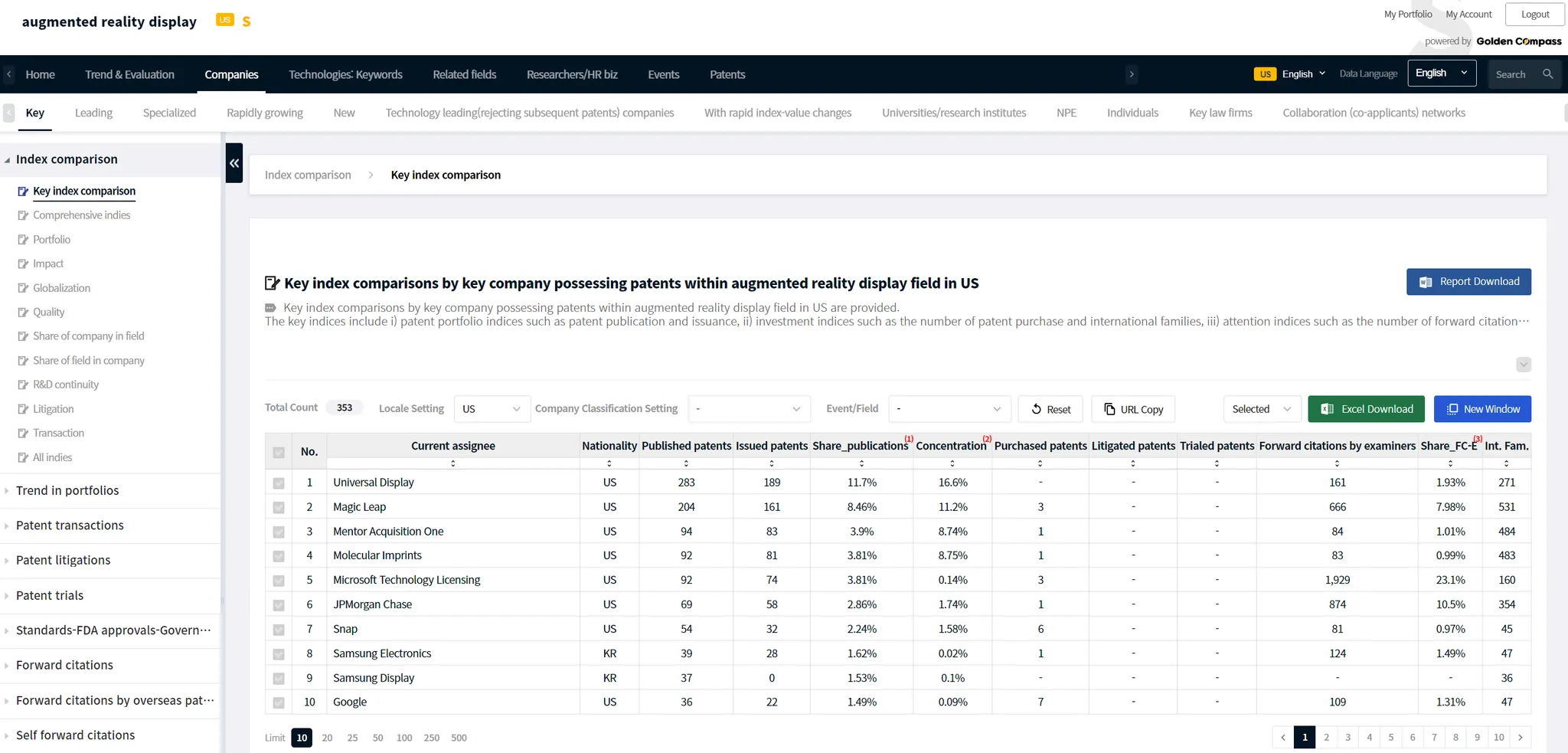 GoldenCompass provides comparison analysis contents among companies with patents in possession in a field.