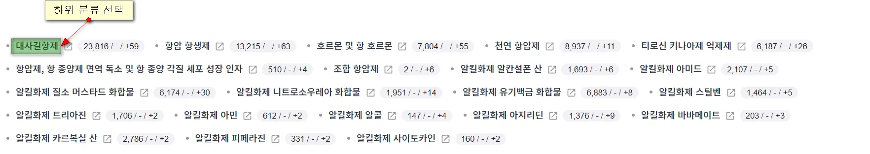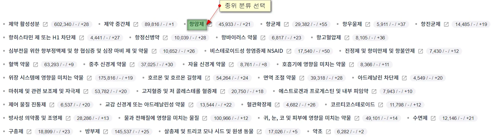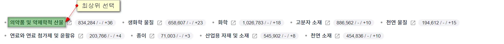 최상위 소재-물질 분류 중에서 예시적으로 "의료 기기"을 클릭/선택합니다.