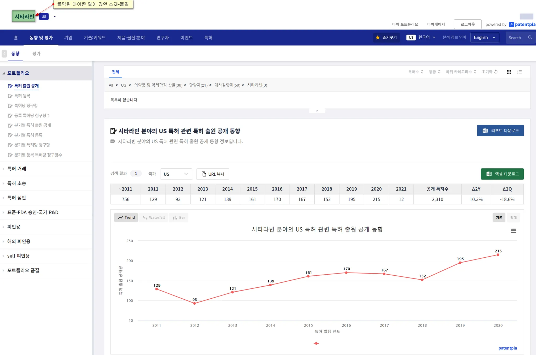 소재-물질 홈은 PatentPia GoldenCompass main 화면에 있습니다.