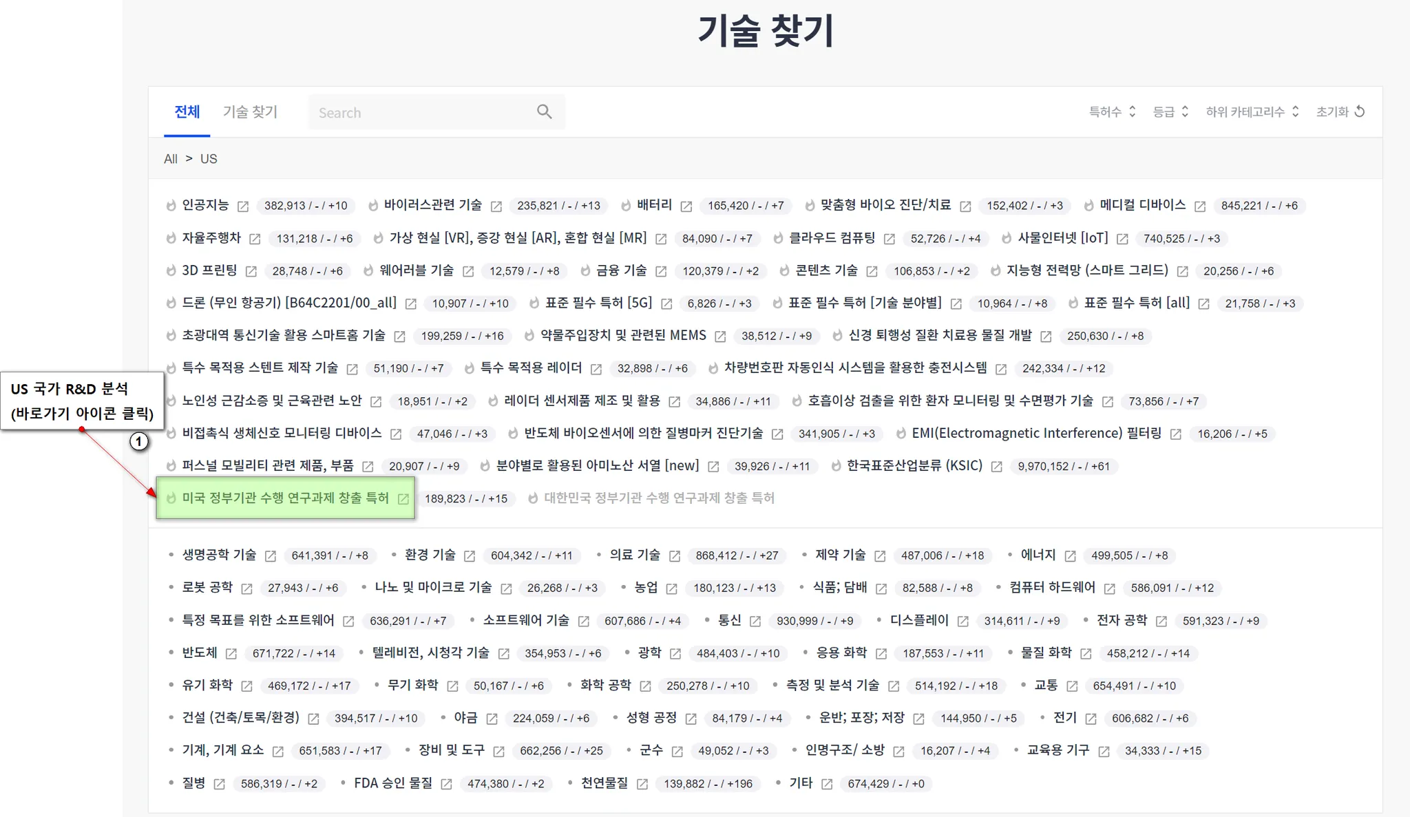 US 국가 R&D 성과 특허 분석은, www.patentpia.com → 기술 홈 → (at 기술홈)기술 찾기 밑에 있는 기술 카테고리 중 위에 있는 pool →’미국 정부기관 수행 연구과제 창출 특허’를 클릭하면 됩니다.