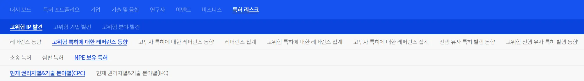 아래는 “특허 리스크” 메뉴 체계의 예시입니다.