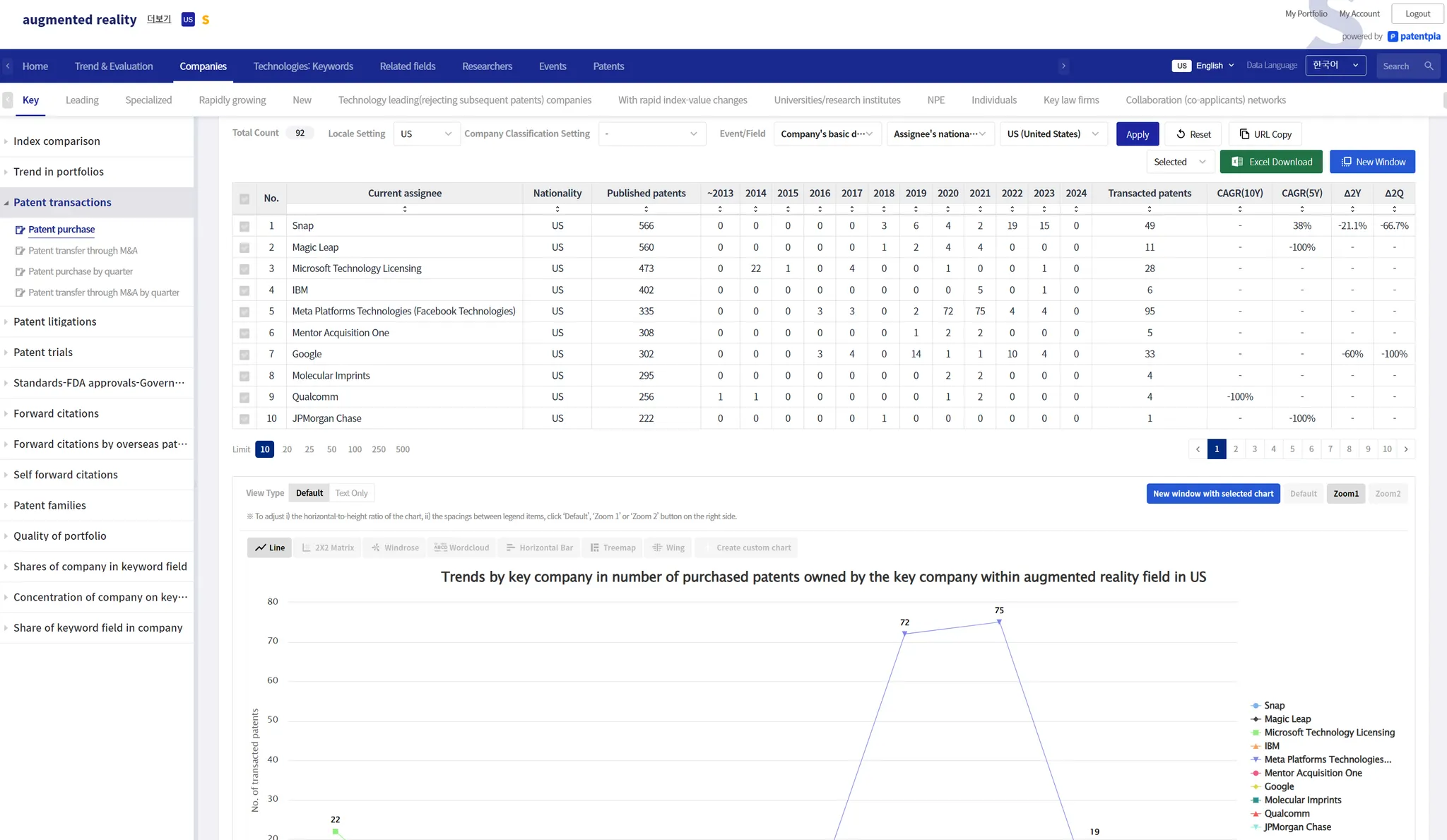 Example of in-depth analysis of competitors/companies using PatentPia GoldenCompass, with Apple as the interested company and augmented reality as the keyword of interest for Apple. If you click on the chain(link) marks that are attached to each item in the above utilization map, the example page will open in a new window.
