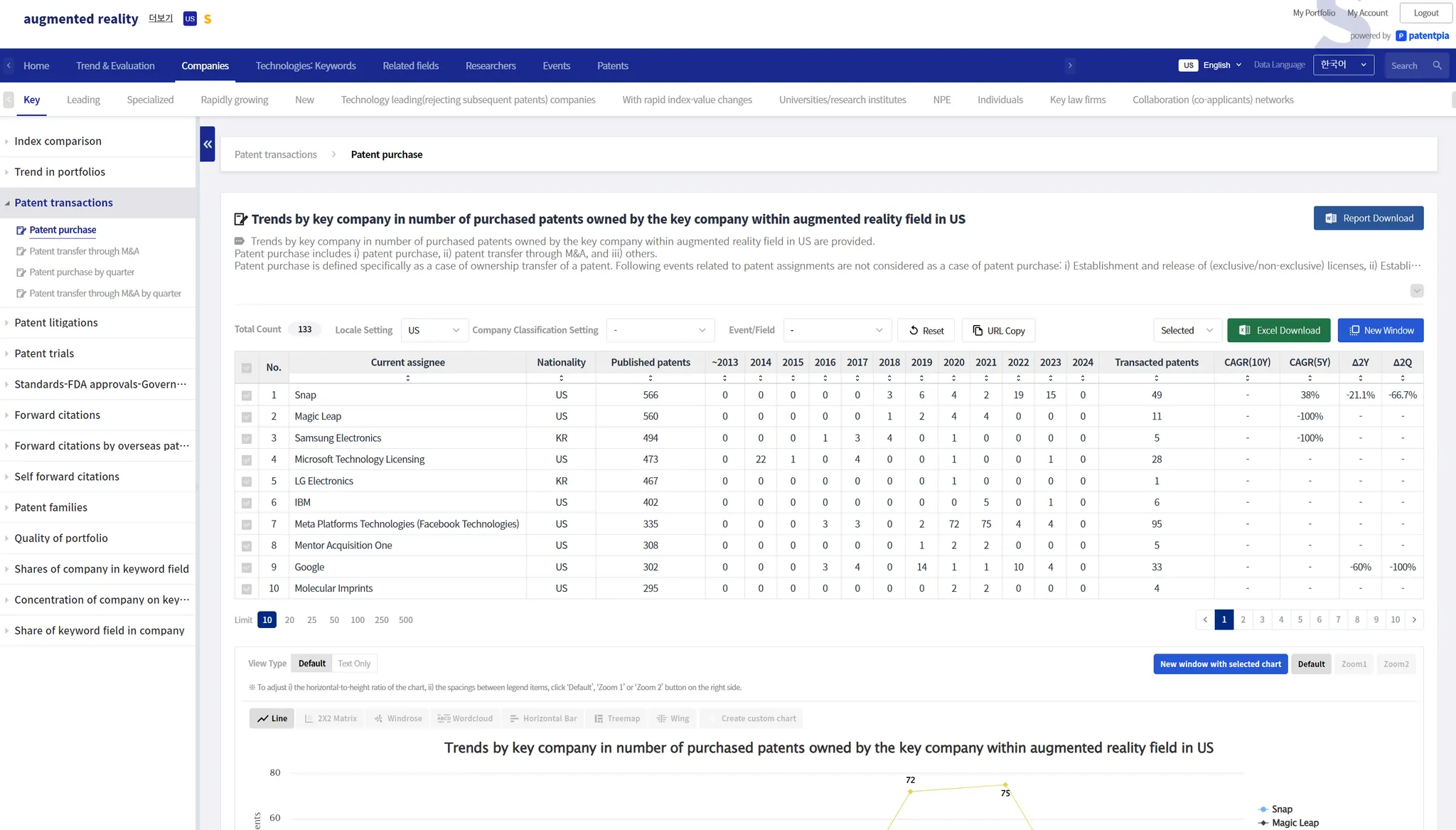 Among the various charts provided by PatentPia GoldenCompass, there is a "Generate Free Chart" button that allows you to change the content or format. Clicking "Generate Free Chart" will open a page where you can modify the chart. If you click the "Copy URL" button, the URL will be copied, so you can copy the URL in the address bar on this page and use it for links, etc.
