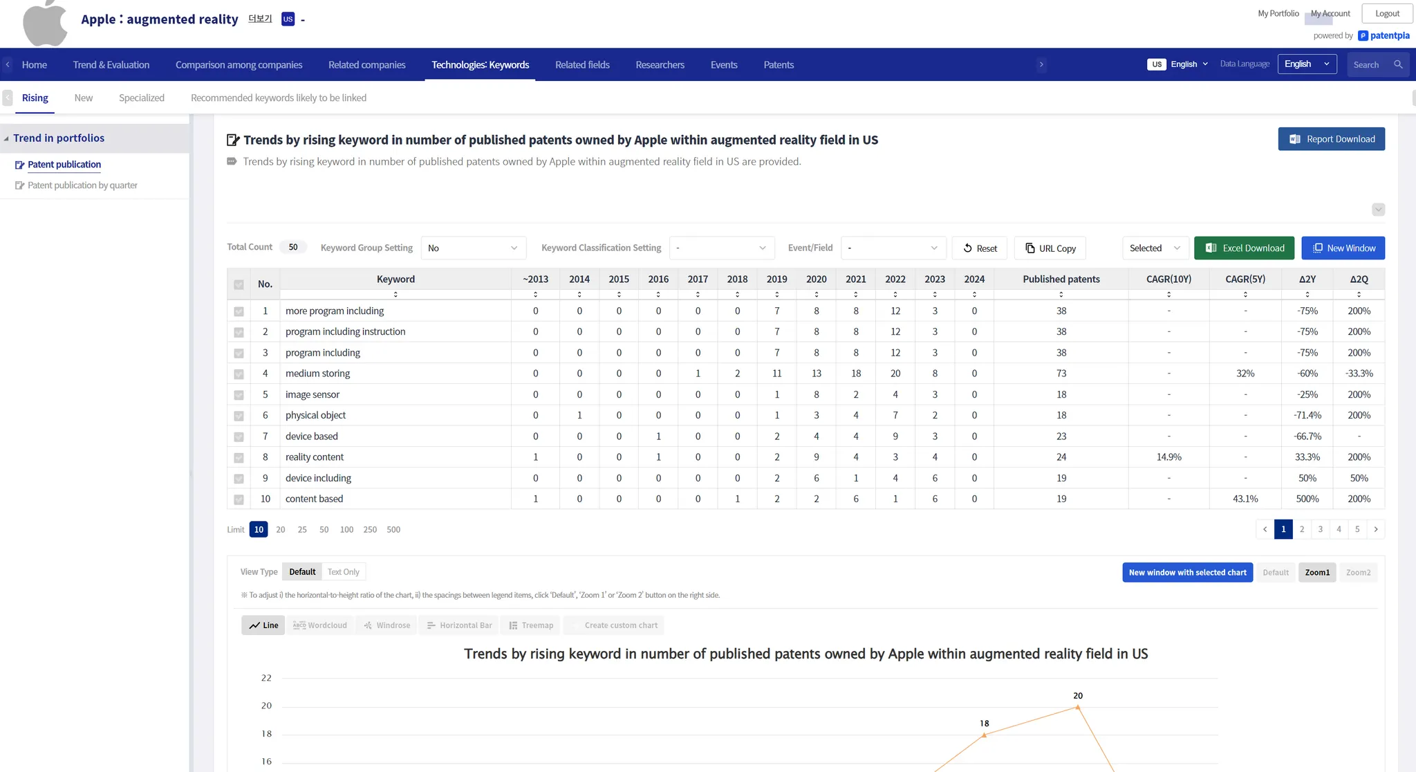 The characteristic of PatentPia Excel data is that it provides much more items than what appears on the page, and the items downloaded are constantly expanding.