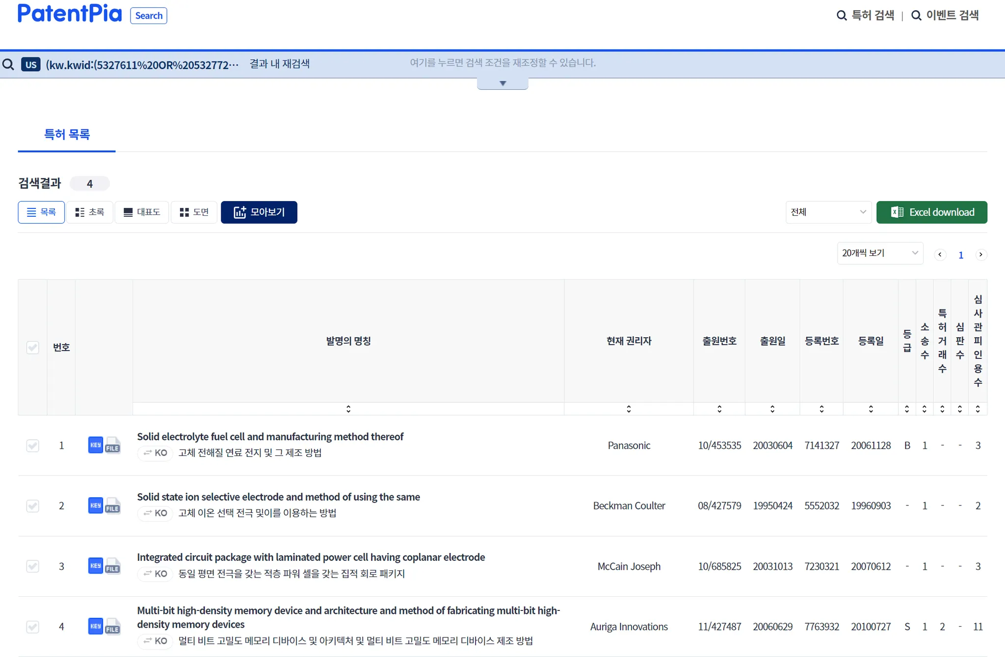 My platform에서 선택된 기술 리스트를 PatentPia Search의 검색 조건으로 사용하는 i) 특허 소송, ii) 특허 심판, iii) 특허 거래 등과 같은 이벤트 검색 서비스가 제공됩니다. PatentPia Search의 이벤트 검색에 대한 상세한 내용은 [Link]를 참조하세요.