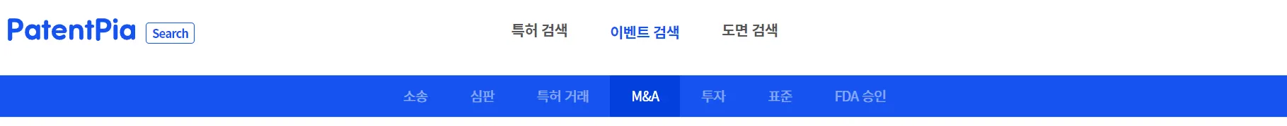 M&A 검색은 PatentPia Search의 이벤트 검색 하위에 있습니다.