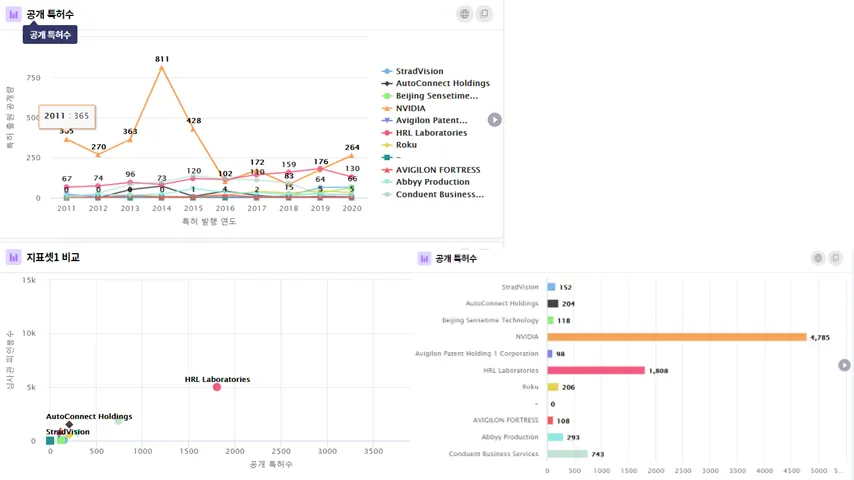 Stradvision이라는 자율주행 자동차용 AI 전문 기업을 예시로, PatentPia GoldenCompass를 활용한 기술 경쟁력 중심의 기업 IR 콘텐츠를 제공합니다. 위 활용 지도의 각 항목에 결합되어 있는 사슬(링크) 표시를 클릭하면, 예시 화면이 새 창으로 열립니다.