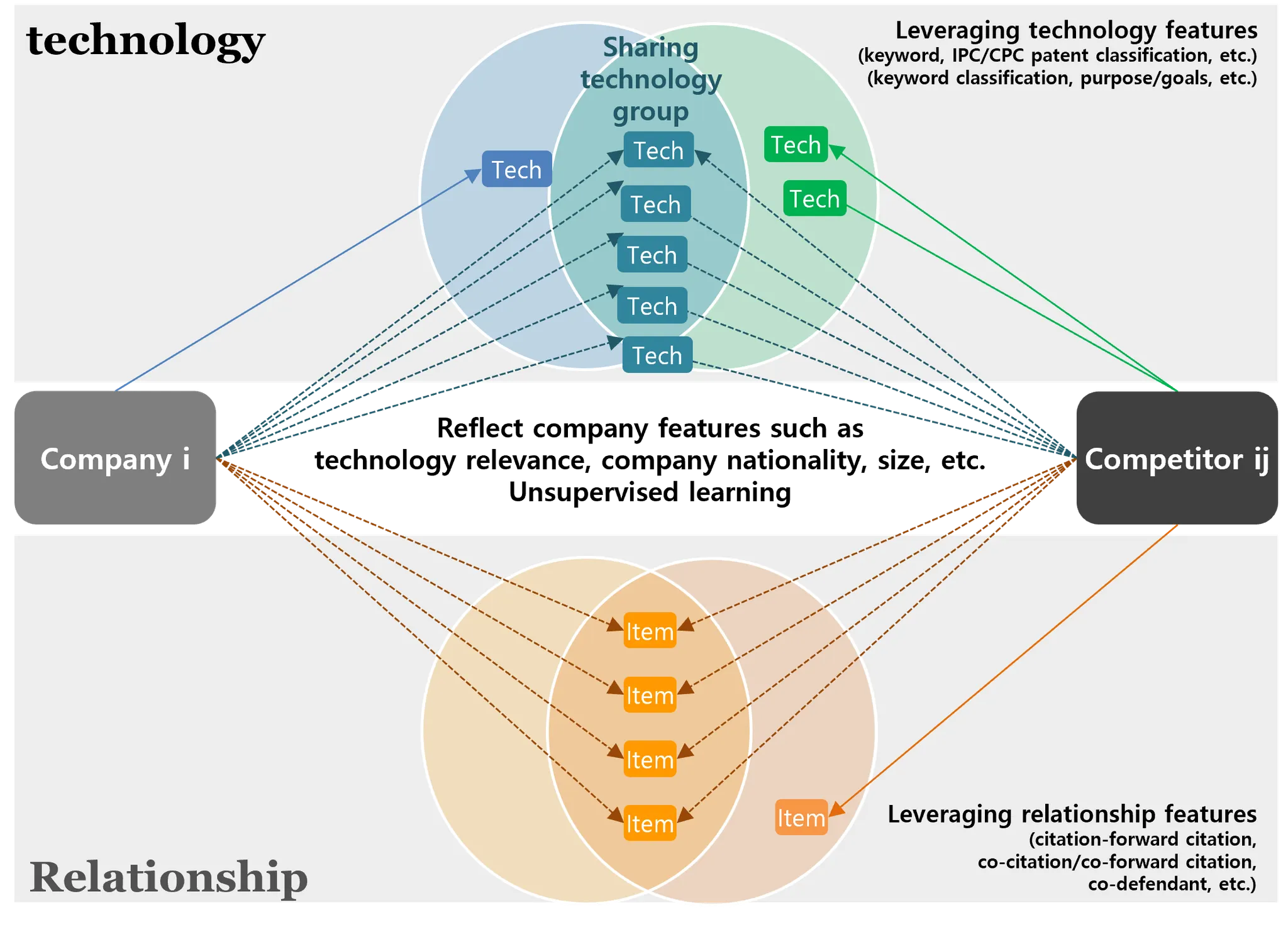 In addition, the higher the similarity of the set of keywords contained in the patents of Company i and Company j, the more Company i and Company j are competitor companies from the patent view.