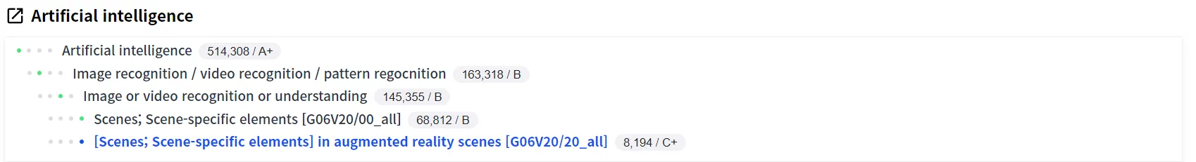 To understand the context (hierarchy, the upper classification to which the technology name belongs) of a technology name that appears as a search result, click on the "blue" dot. The same technology name can exist in different contexts, so it's important to choose the right context for your search results.