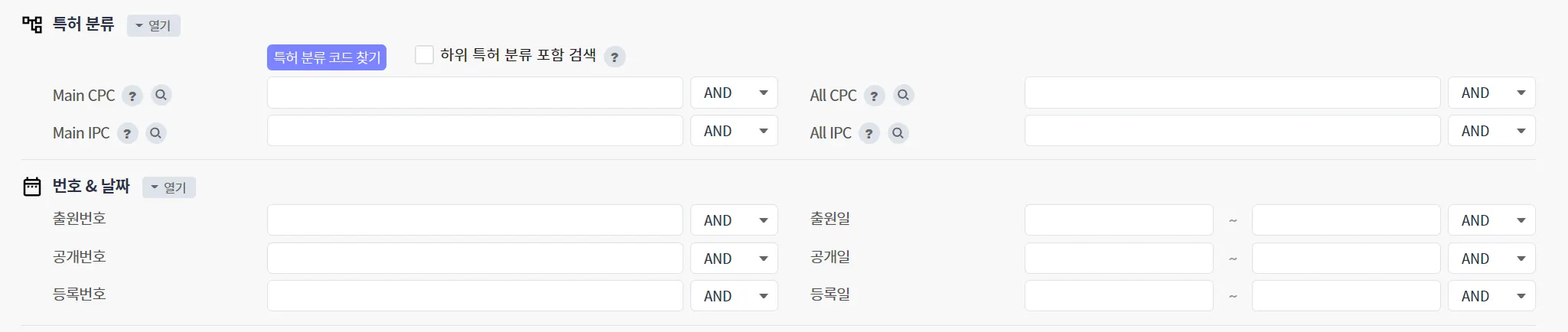 검색 목적에 부합하는 검색 결과의 생성을 위해서 PatentPia Search는 다음과 같은 특허 검색 필드를 제공합니다.