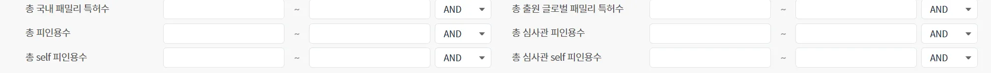 특허별 계량 속성 필드 : 특별한 계량 속성(예, self 심사관 피인용수 10 이상 등 )을 가지는 특허 검색