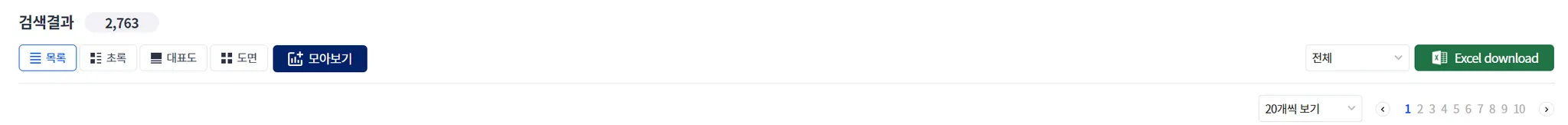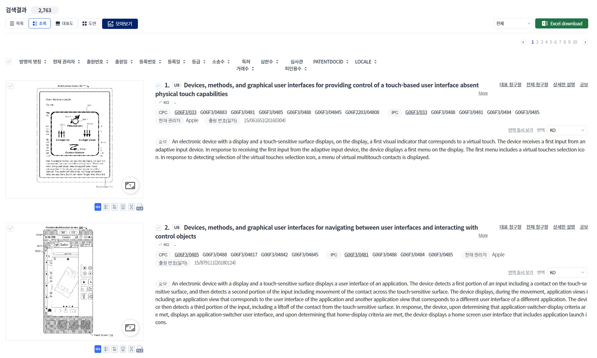 가장 일반적인 형태입니다. 소팅 등을 통하여, 특별한 특허를 찾거나, 발명의 명칭만 보고 빠르게 스캐닝하는 목적으로는 “목록형” 모드가 좋습니다.
