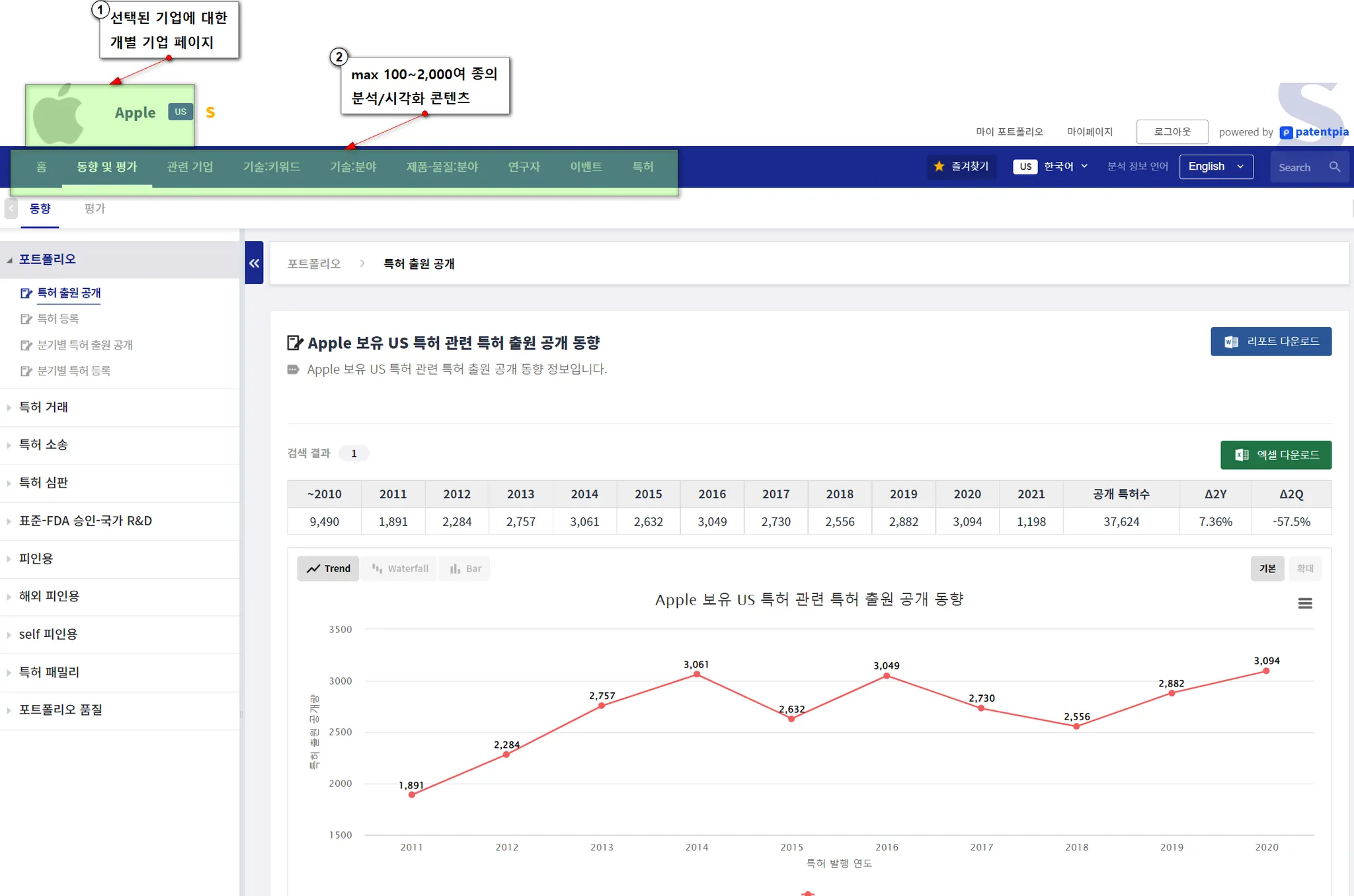 검색 결과 특허 리스트에 대한 분석 리포트 생성 및 활용