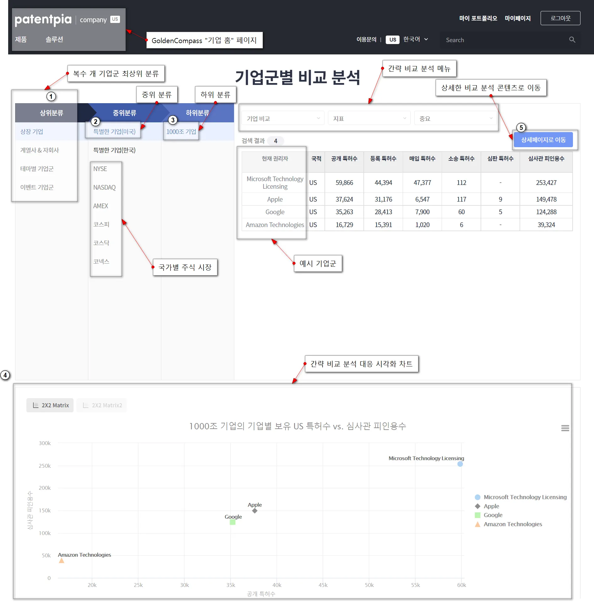 GoldenCompass는 분야 내 특허 보유 기업 간에서 비교 분석 콘텐츠를 제공합니다.
