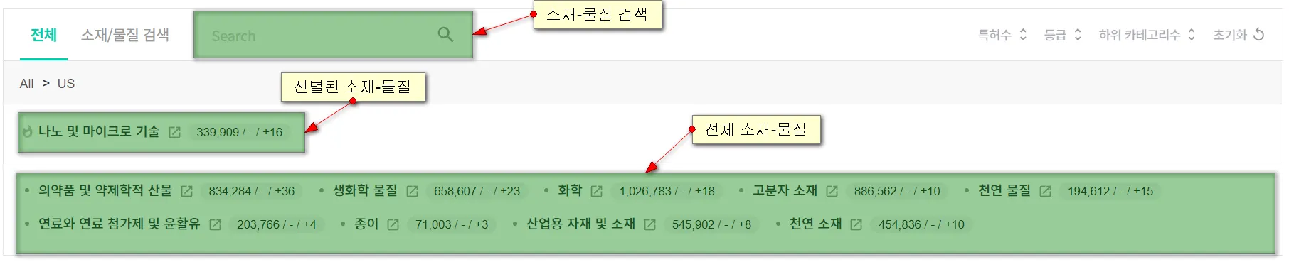 소재-물질 홈에서의 기술 검색