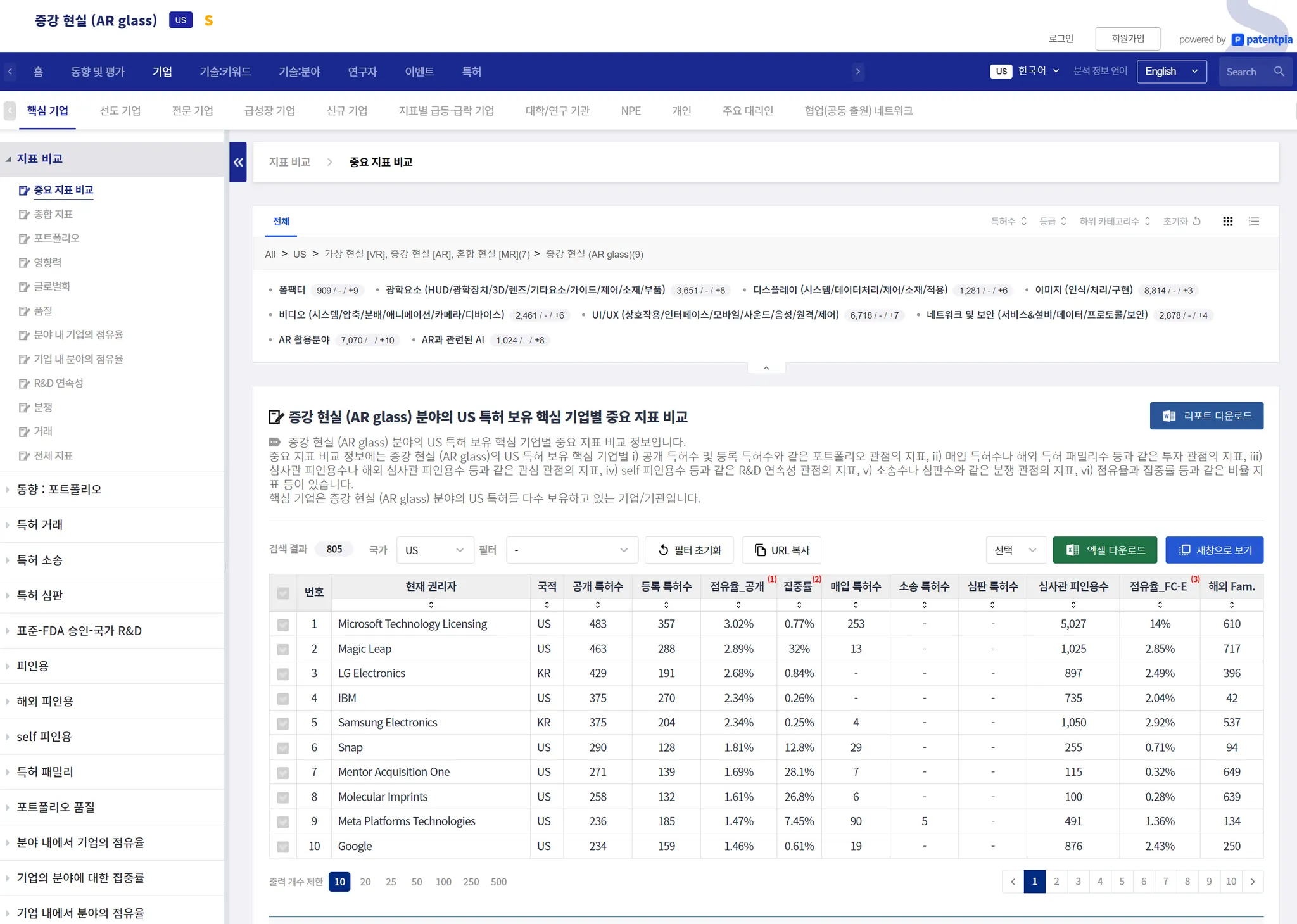 핵심 기업 : 특정 분야에 많은 특허를 보유하고 있는 기업