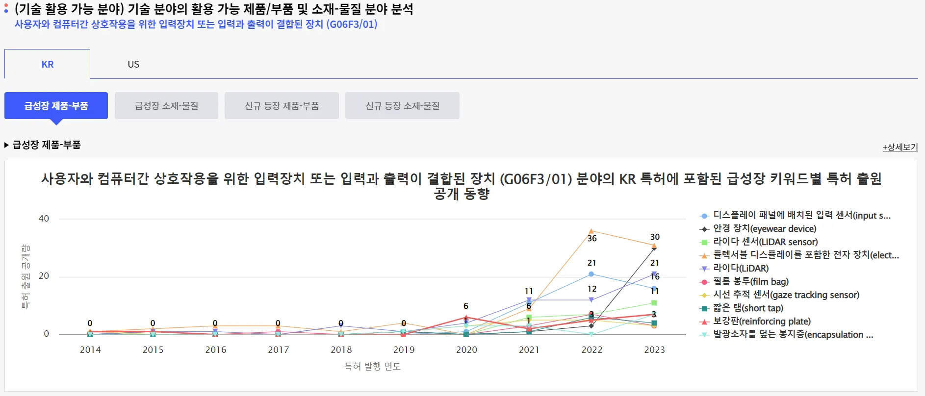 기술 분야의 키워드(급성장, 신규 등장 등)을 분석합니다.