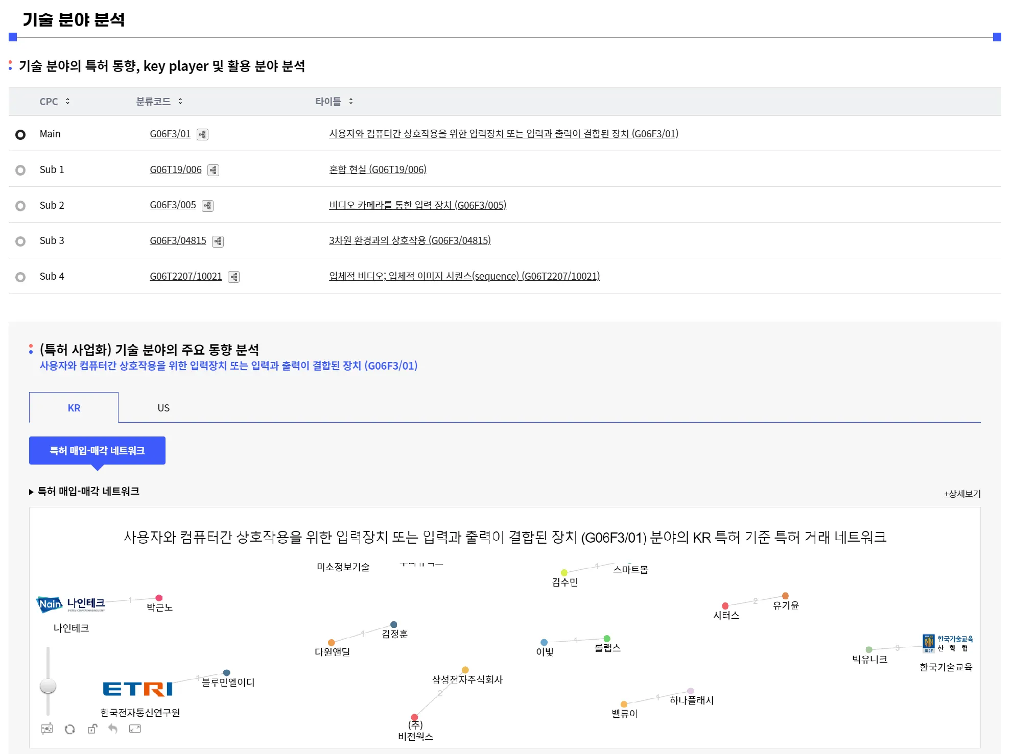 특허 기술이 활용되거나, 관련성 높은 이미지를 활용하여, i) 기술 이전하려는 특허 맵핑, ii) 분야의 기술 거래/매입 동향, iii) 분야의 전문 기업이나, iv) 분야의 특허 매입 네트워크 등의 정보를 연결하면, 기술 사업화 대상 특허의 활용성을 직관적으로 이해할 수 있게 됩니다.
