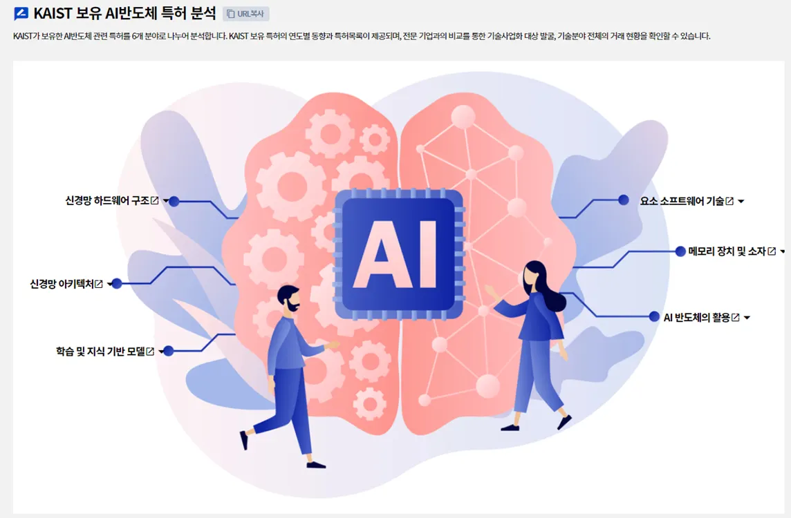 링크를 클릭하면 나타나는 웹 페이지에서 글자 부분(예, 신경망 하드웨어 구조) 옆에 있는 아이콘(화살표가 있는 사각형이나, 역 화살표를 클릭하면, 세부적인 메뉴가 나타납니다. 메뉴(동향, 전문기업, 사업화 대상 특허, 거래 네트워크)를 클릭하면, 대응되는 콘텐츠/정보로 이동됩니다.
