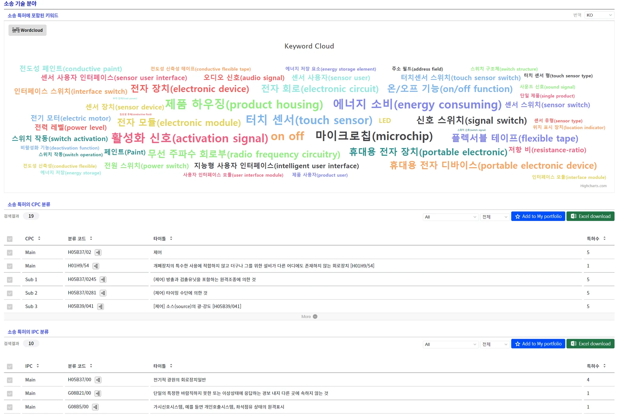 소송에 사용된 특허에서 추출한 키워드나 소송 특허의 CPC/IPC와 같은 분류 아이템 각각은 GoldenCompass의 개별 키워드홈 페이지나, 개별 CPC/IPC홈 페이지로 연결될 수 있습니다. 한편, 각 키워드/특허 분류(CPC/IPC) 등은 My 포트폴리오의 키워드 폴더나 특허 분류(CPC/IPC) 폴더 등록될 수도 있습니다.