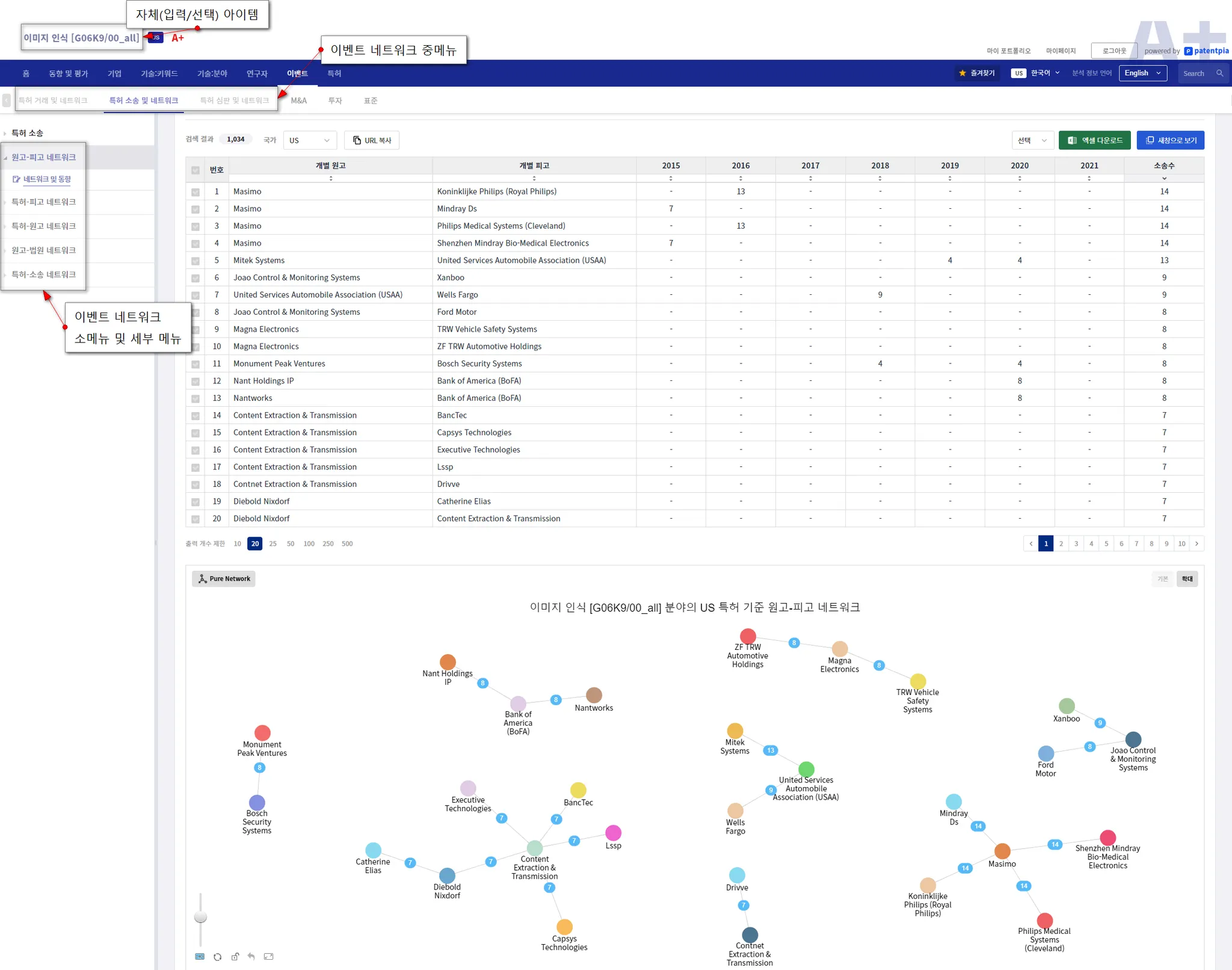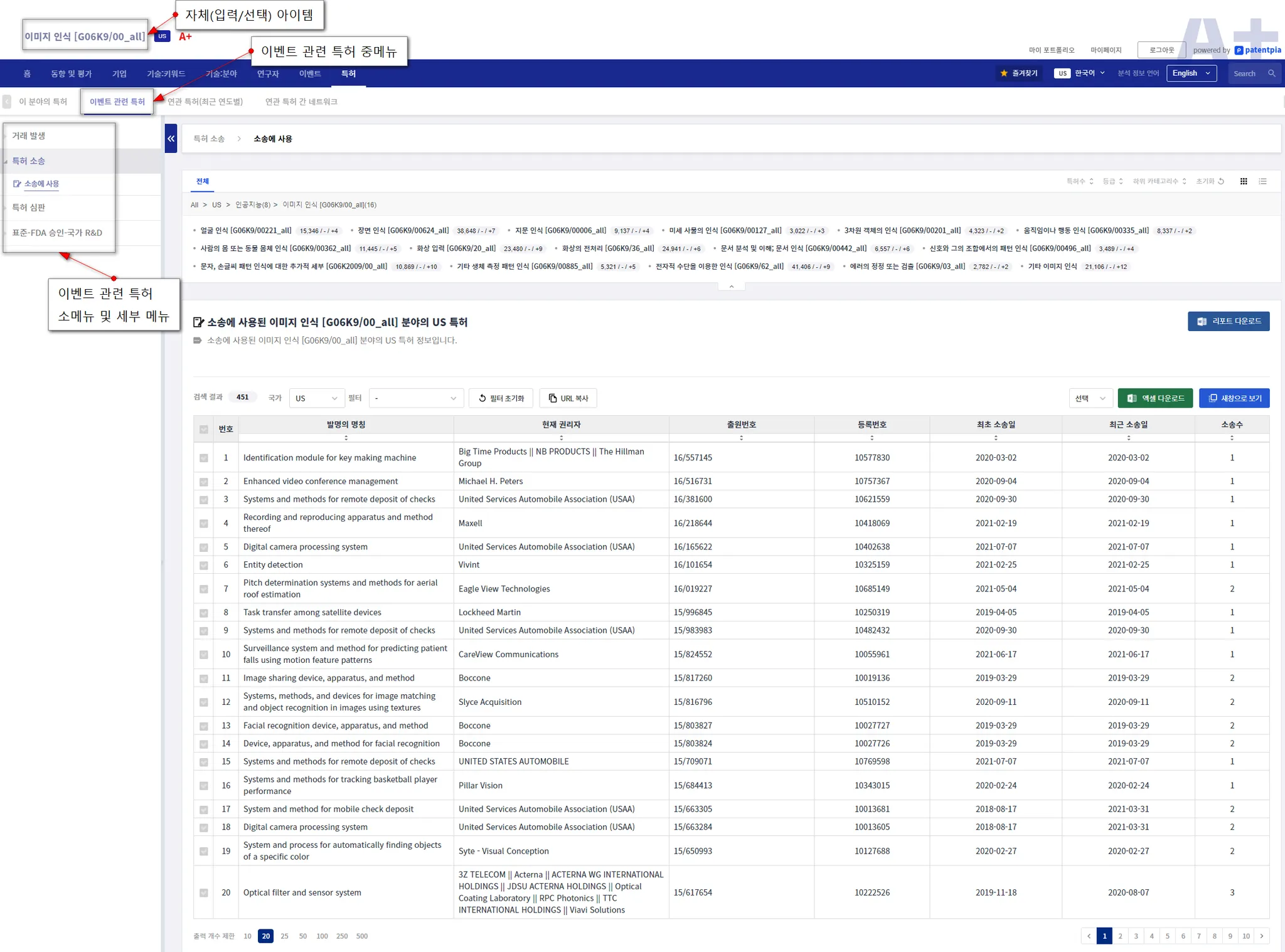 특허 관련 이벤트는 특허가 사용된 이벤트를 말합니다. 특허 관련 이벤트에는 i) 특허 거래/매입/M&A를 통한 특허 이전, ii) 특허 소송/특허 심판 등의 거래, iv) 표준 특허, v) 특허가 사용된 FDA 승인, vi) 성과로서 특허가 창출된 국가 R&D 등이 있습니다.