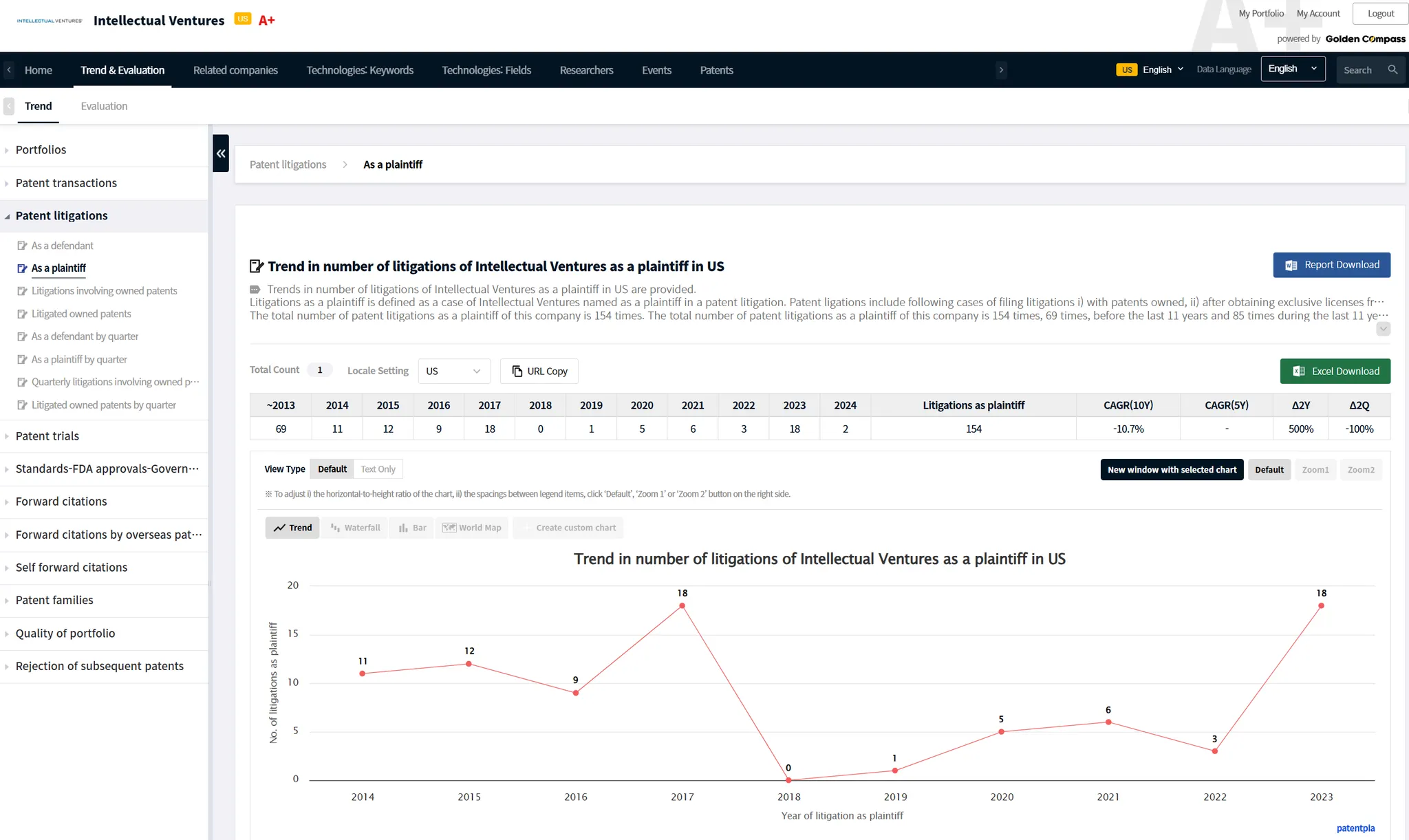 PatentPia GoldenCompass provides a variety of multi-dimensional analysis services for individual NPEs, as well as for companies.
