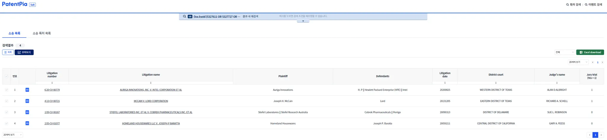 My platform provides event search services such as i) Patent litigations, ii) Patent trials, iii) Patent transactions, etc. that use a list of selected technologies as search conditions for PatentPia Search. For more information on PatentPia Search's events search, see [Link].