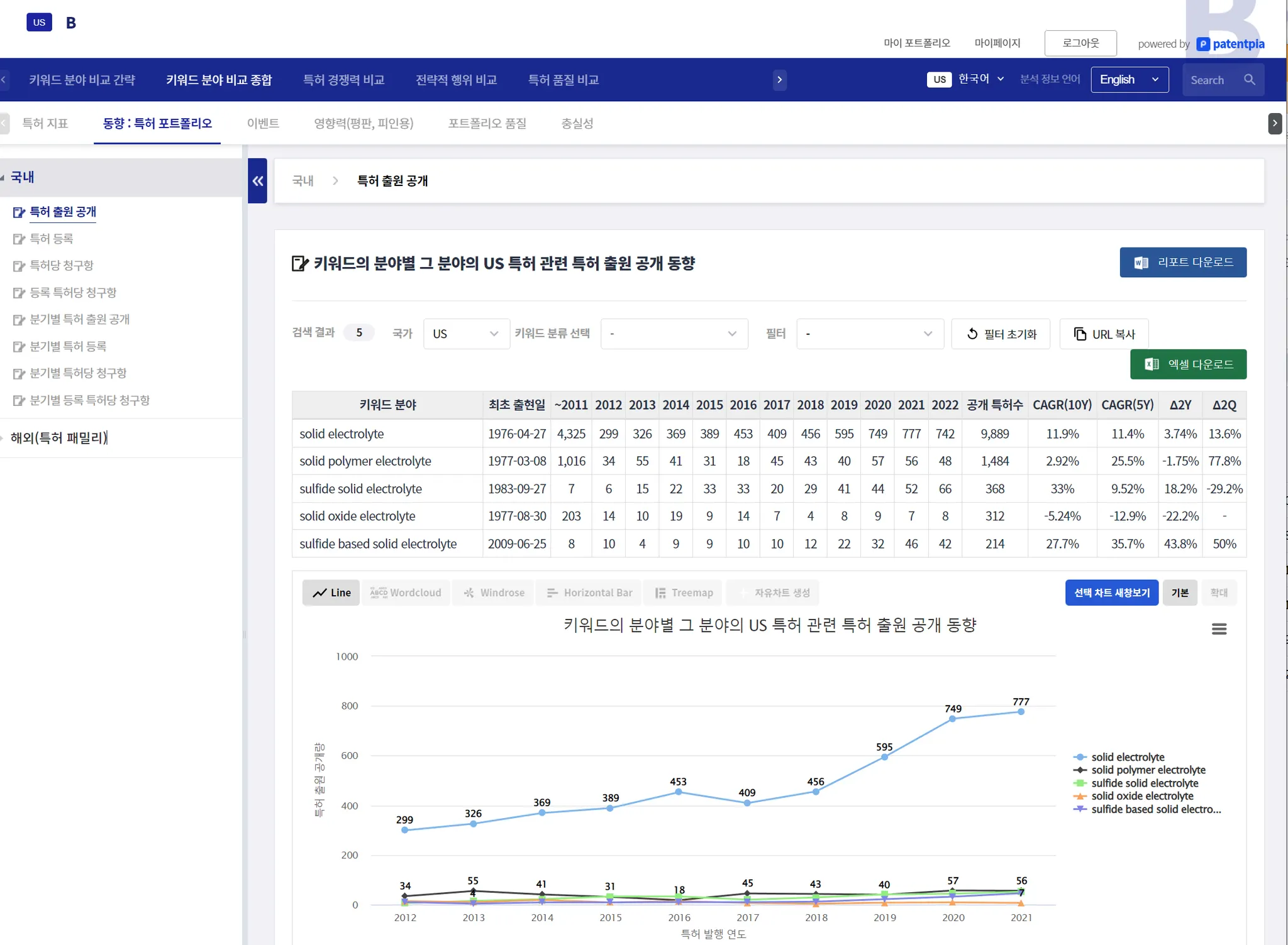 My platform에서 선택된 기술 리스트를 사용하는 수십 종의 비교 분석 콘텐츠가 GoldenCompass를 통해서 제공됩니다. GoldenCompass 화면에서는 i)다양한 비교 분석 메뉴 선택, ii) 리포트 생성&다운로드, iii) 엑셀 파일로 데이터 다운로드가 가능합니다. 상세한 비교 분석 콘텐츠는 [Link]를 참조하세요.