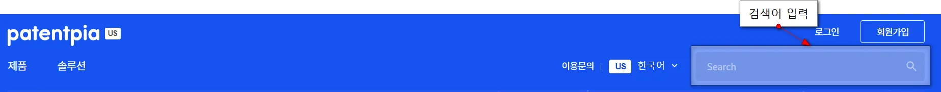 검색어 입력 영역은 사이트의 최상단 오른쪽에 있습니다.