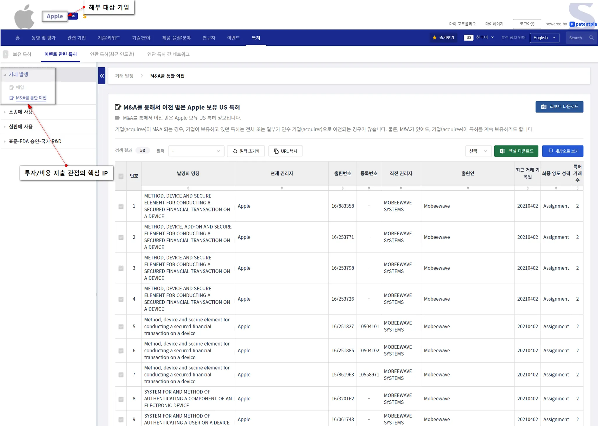 권리자가 변동되는 경우에는 i) M&A를 통한 특허 이전, ii) 기업 집단 간의 전략적인 IP 재배치/재조정가 있습니다.