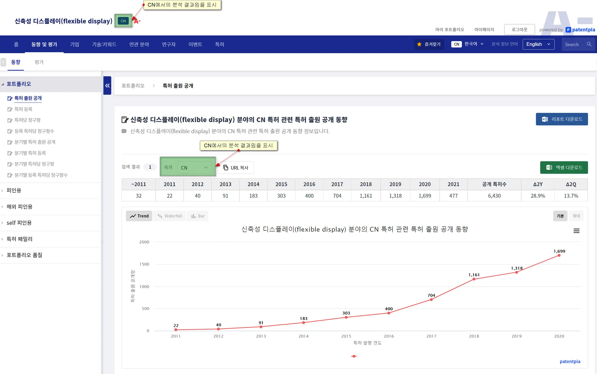 (참고) "국가 필터"는 키워드, 기술, 제품-부품, 소재-물질, 특허 분류(CPC 등)에 대한 동향 분석에서 제공하고 있습니다. 기업의 경우, 각 국가별로 그 나라의 언어로도 된 기업 표기와 기업 실체에 대한 n:1 맵핑 작업이 되어 있어야  본 기능이 원활하게 제공됩니다. 현재, 글로벌 1,000대 기업에 대해서는 "국가 필터"가 작동하고 있습니다. 국가별 상장사 및 기타 주요 기업을 우선 대상으로 하여, 본 기능이 작용되는 기업의 범위를 넓히려 합니다.