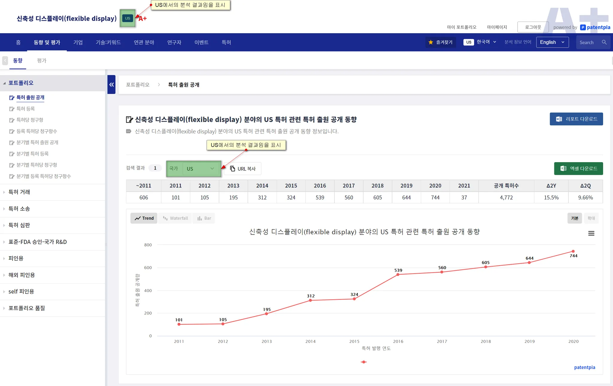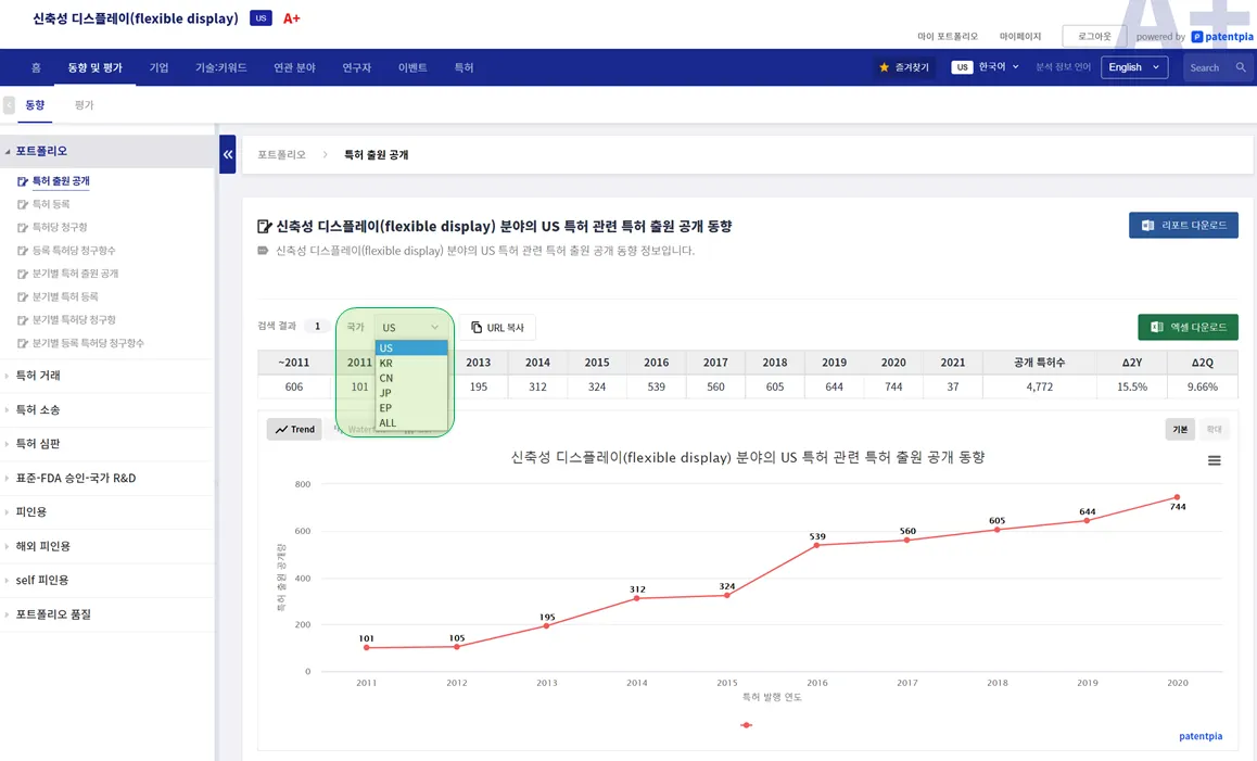특정한 기술 등과 같은 분석 대상 아이템(item)에 대해 미국(US)를 대상으로 한 분석 결과를 보고 있을 때, 다른 나라에 대한 분석 결과를 보고 싶을 수 있습니다.