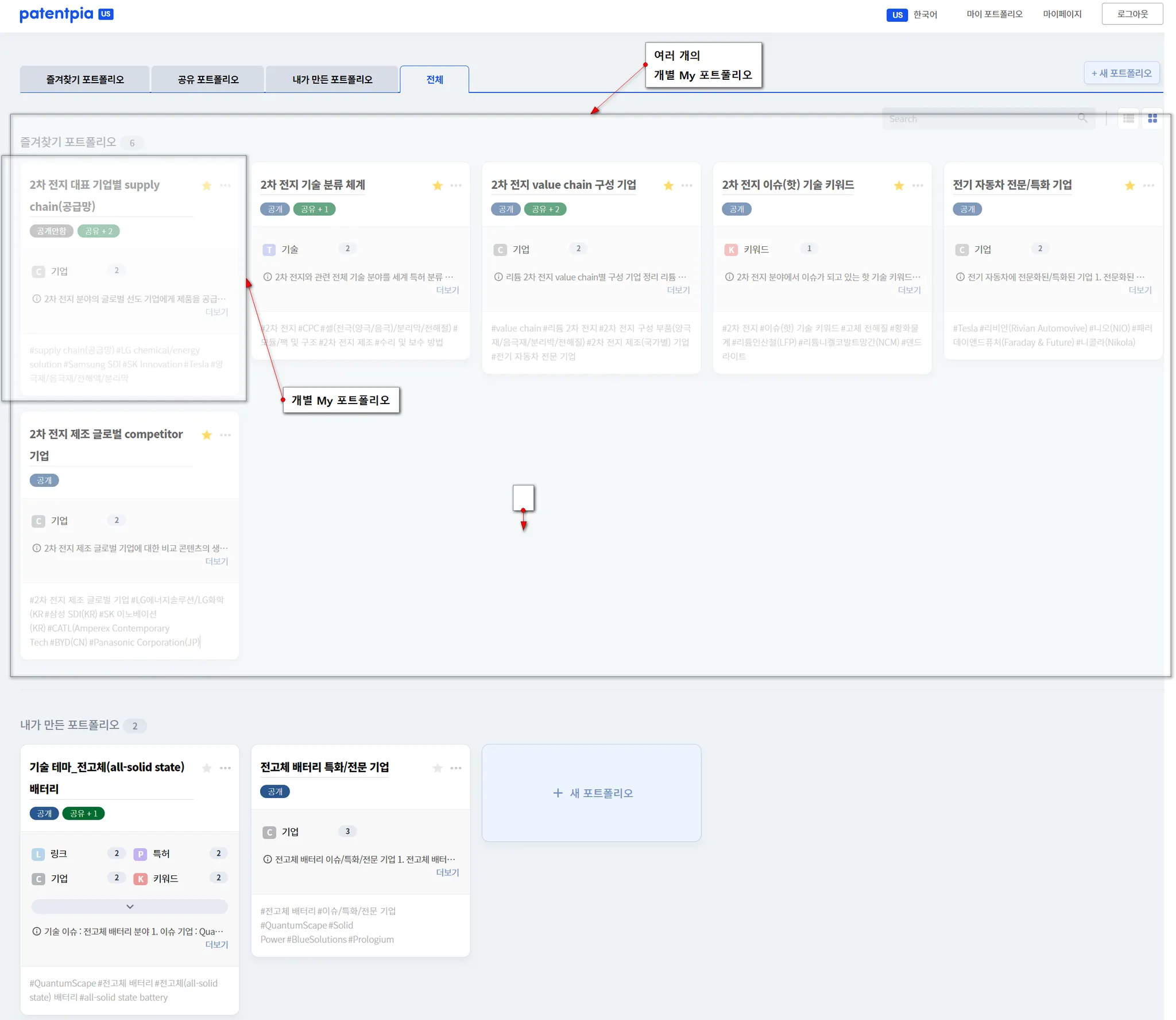 PatentPia My Platform(MP)은 i) 사용자가 등록(저장/업로드)한 아이템을 대상으로 하는 ii) 검색/분석/리포트 등의 각종 콘텐츠 서비스를 제공하는, iii) 개인화된 체계입니다.
