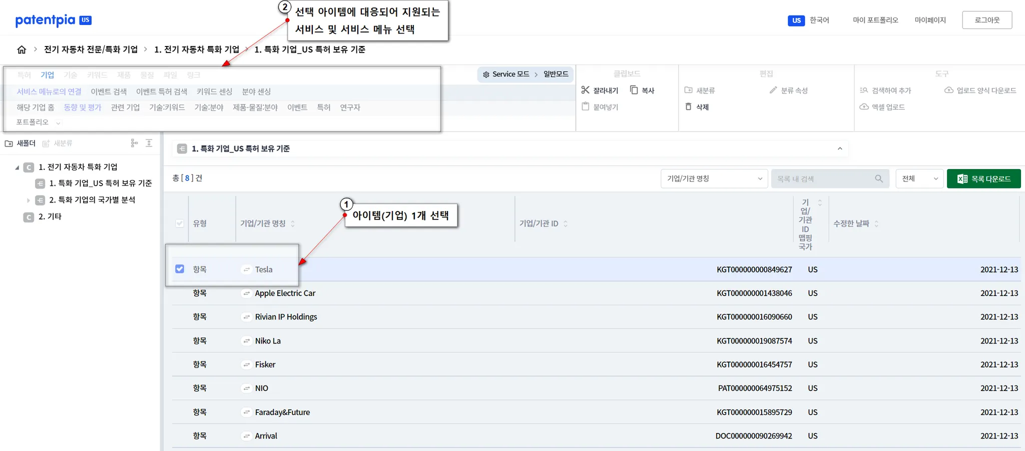 아이템을 복수 개 선택하면, 비교 분석 콘텐츠가 제공됩니다. 비교 분석 콘텐츠는 동향 및 평가 콘텐츠가 중심이 됩니다. 비교 분석 콘텐츠에 대한 상세한 내용은 “기업 등 비교 분석 콘텐츠 체계” 페이지를 참조하세요.