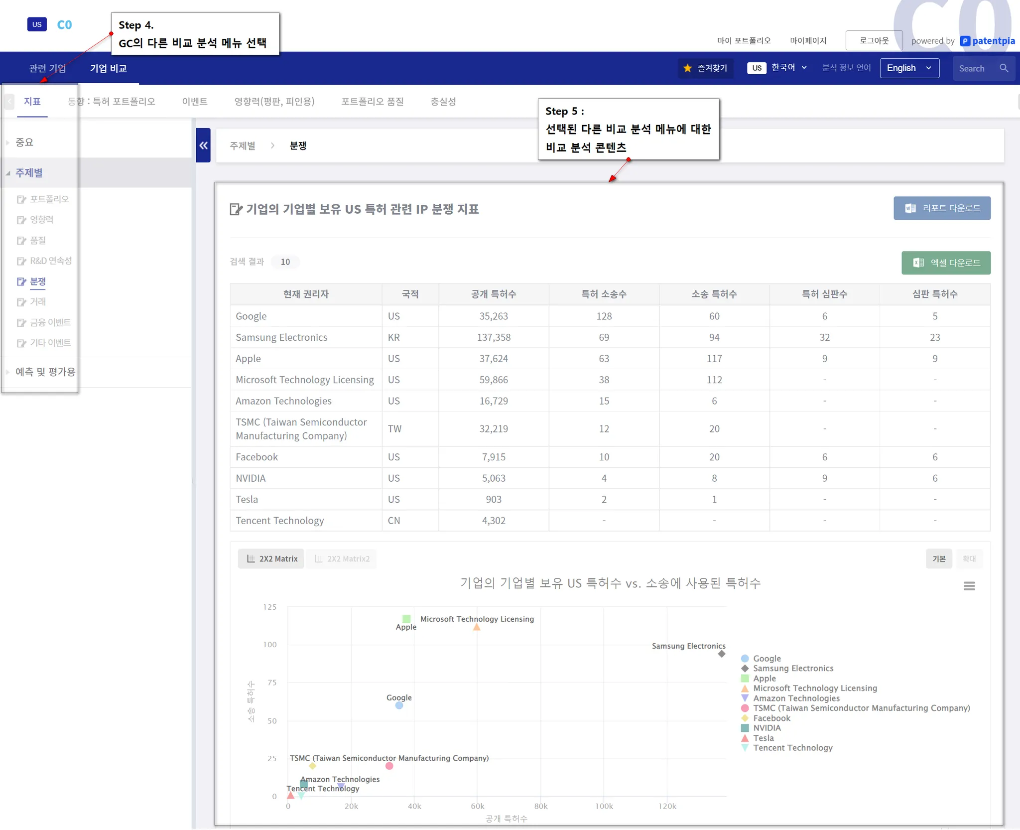 Step 3 : 선택된 분석/비교 분석 메뉴에 따른 분석/비교 분석 콘텐츠 제공