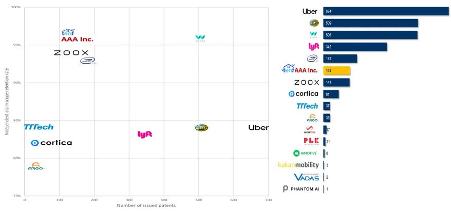 예시 기업 AAA에 대한 비교 기업군 선택 기반의 콘텐츠 예시입니다. 비교 기업군의 및 비교 지표의 체계적/전략적인 선택으로 기업의 기술력에 대한 차별화된 포지셔닝 지원이 가능합니다.