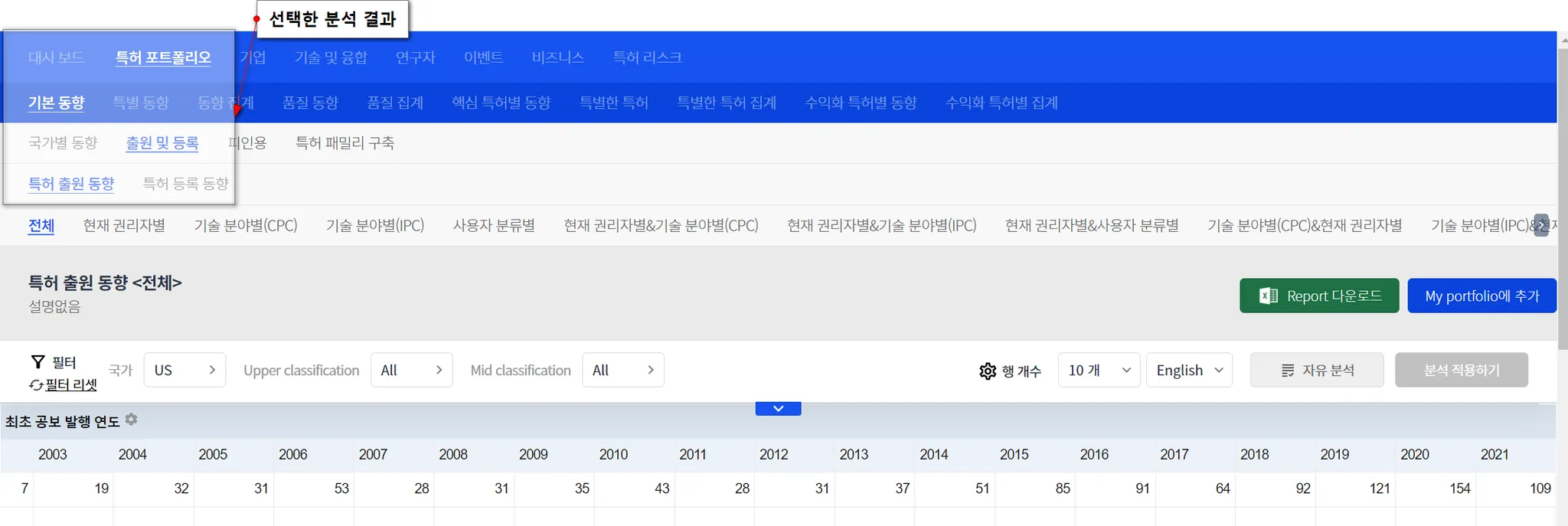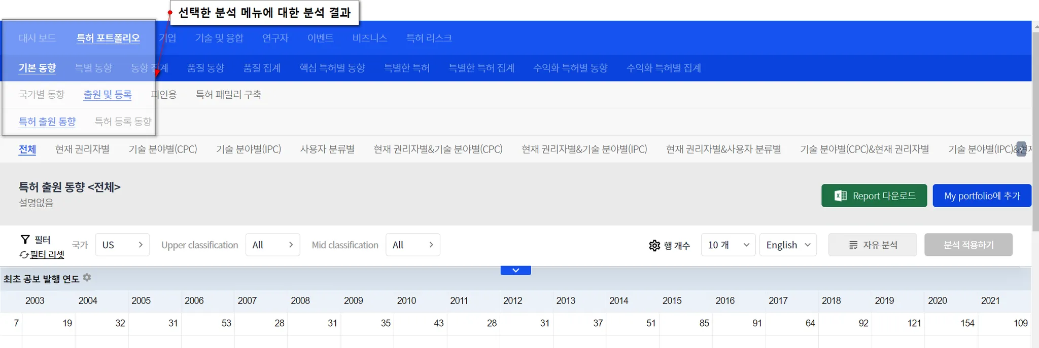 특허 분석 메뉴를 클릭합니다.
