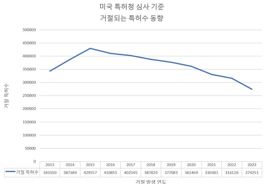 No. of patent rejections by the USPTO has been declining