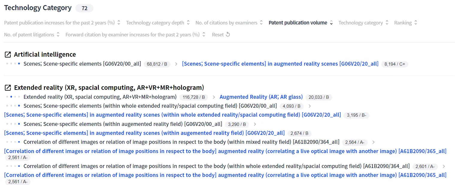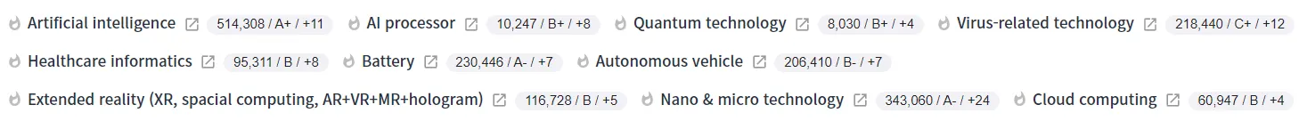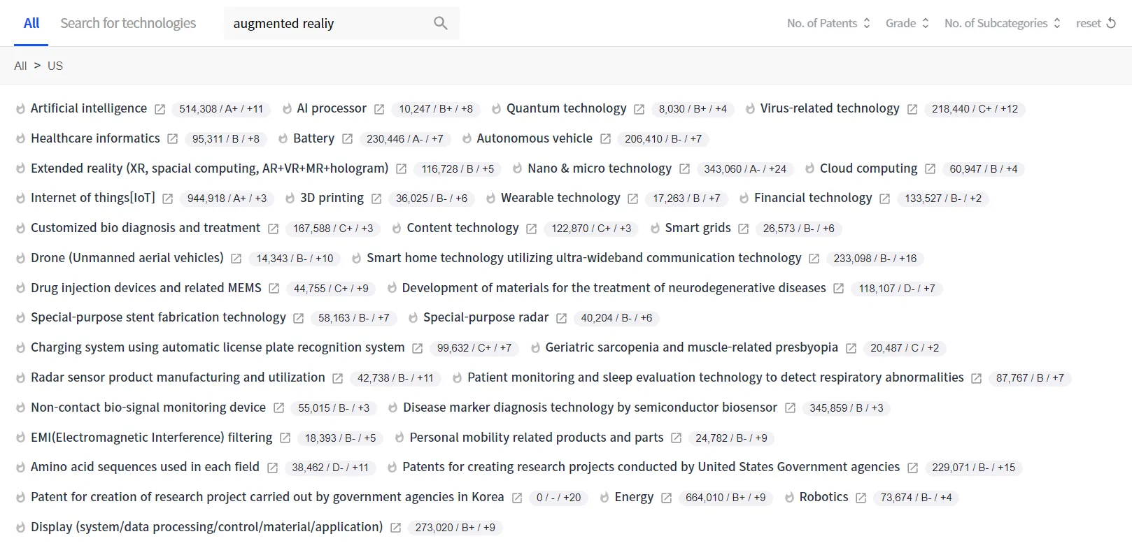 The most important thing in the Technology Home is the technology classification scheme. The technology classification system provides about 100,000 different technologies in a hierarchy, and promising technologies such as artificial intelligence, autonomous vehicles, virtual reality, etc. are separately categorized, and promising technologies are constantly being added.