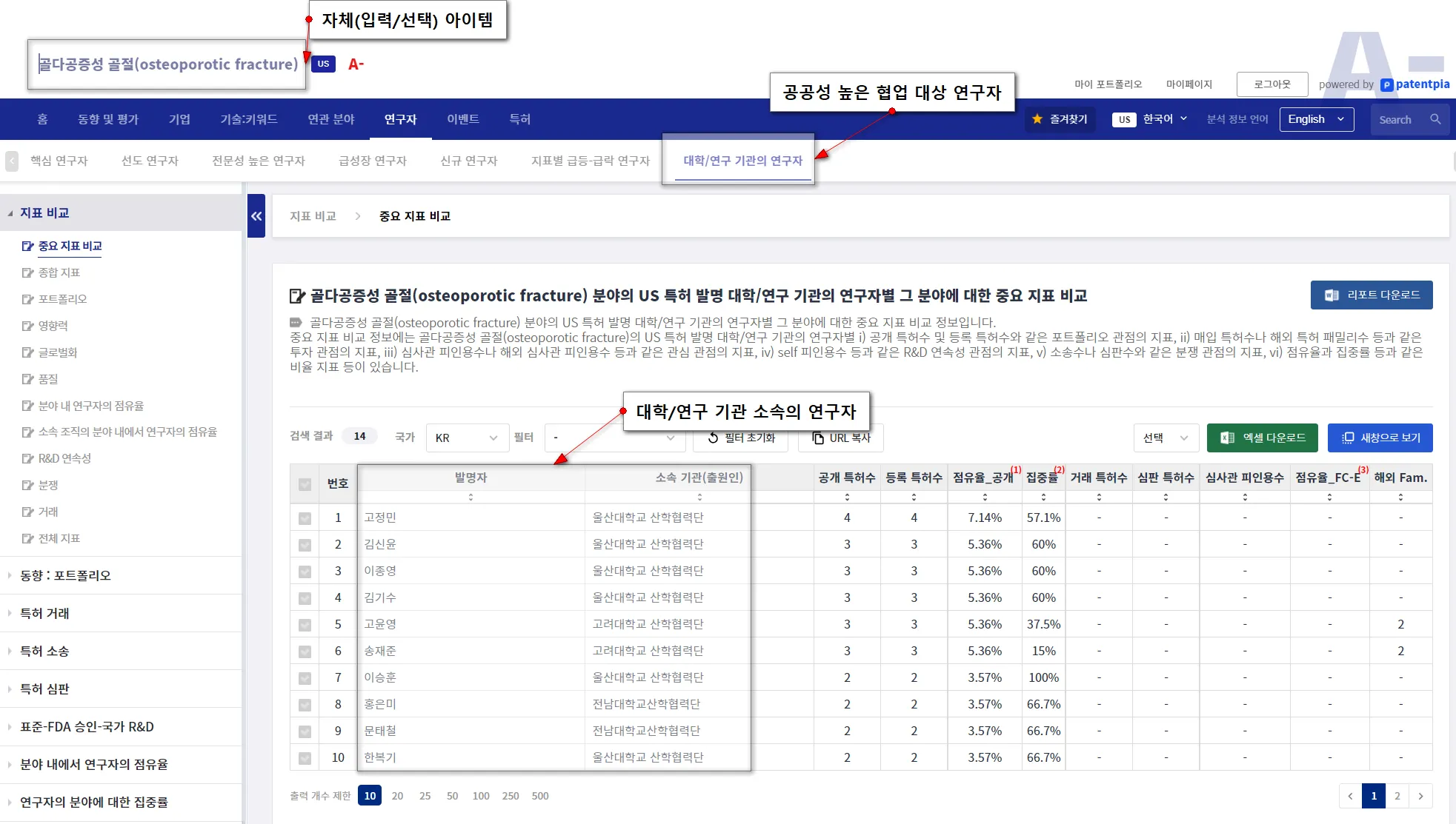 Core researcher(예, 노벨상 수상자)의 핫/신규 아이템과의 연관성