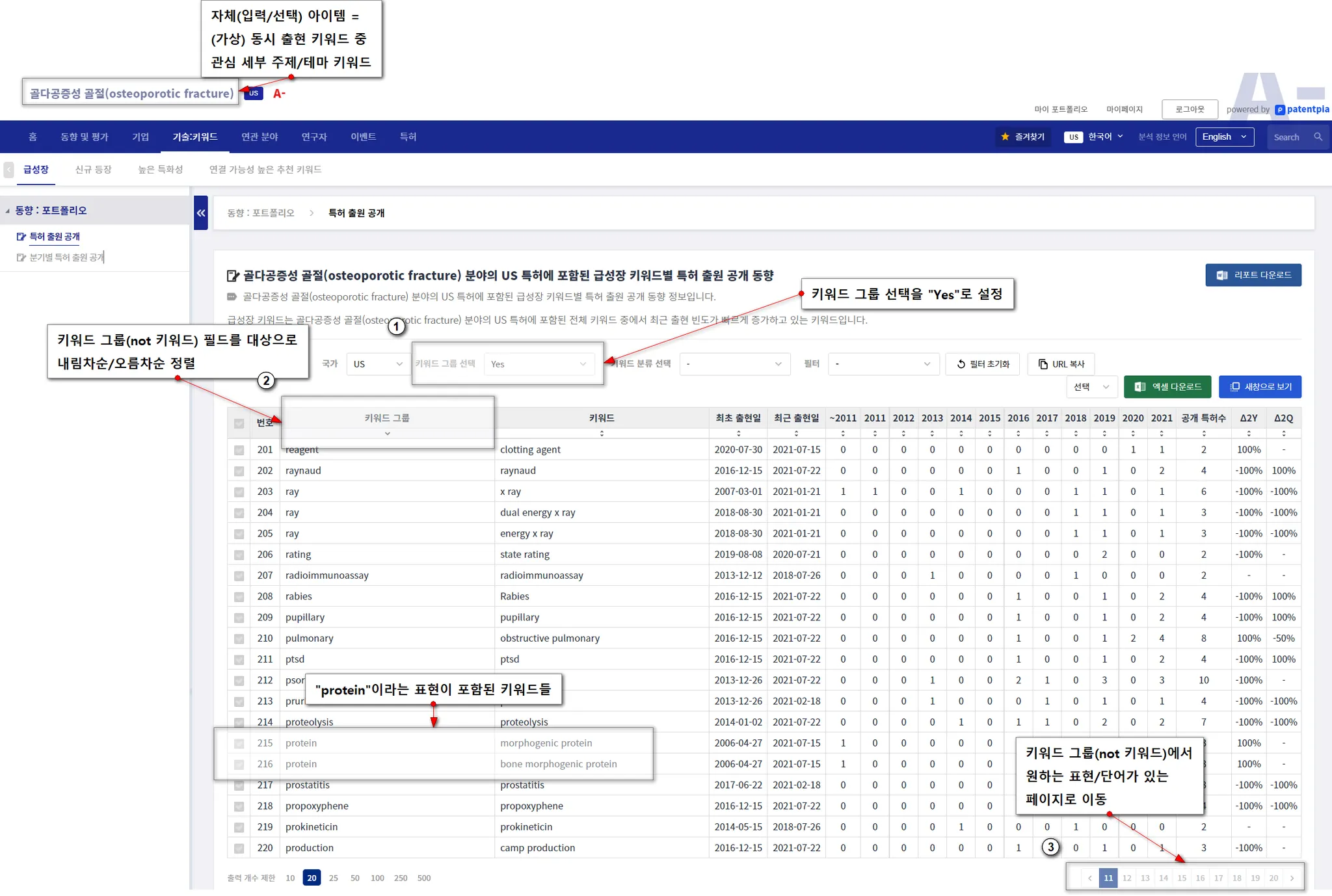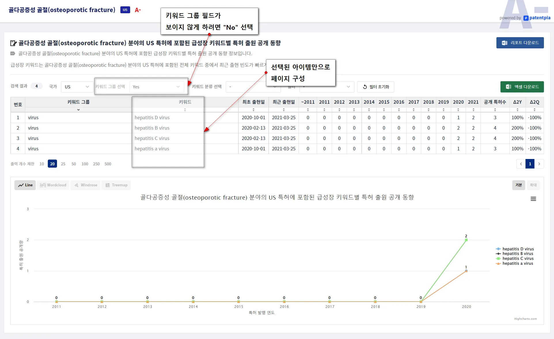 FDA 승인(에 사용된 특허)에 포함된 키워드