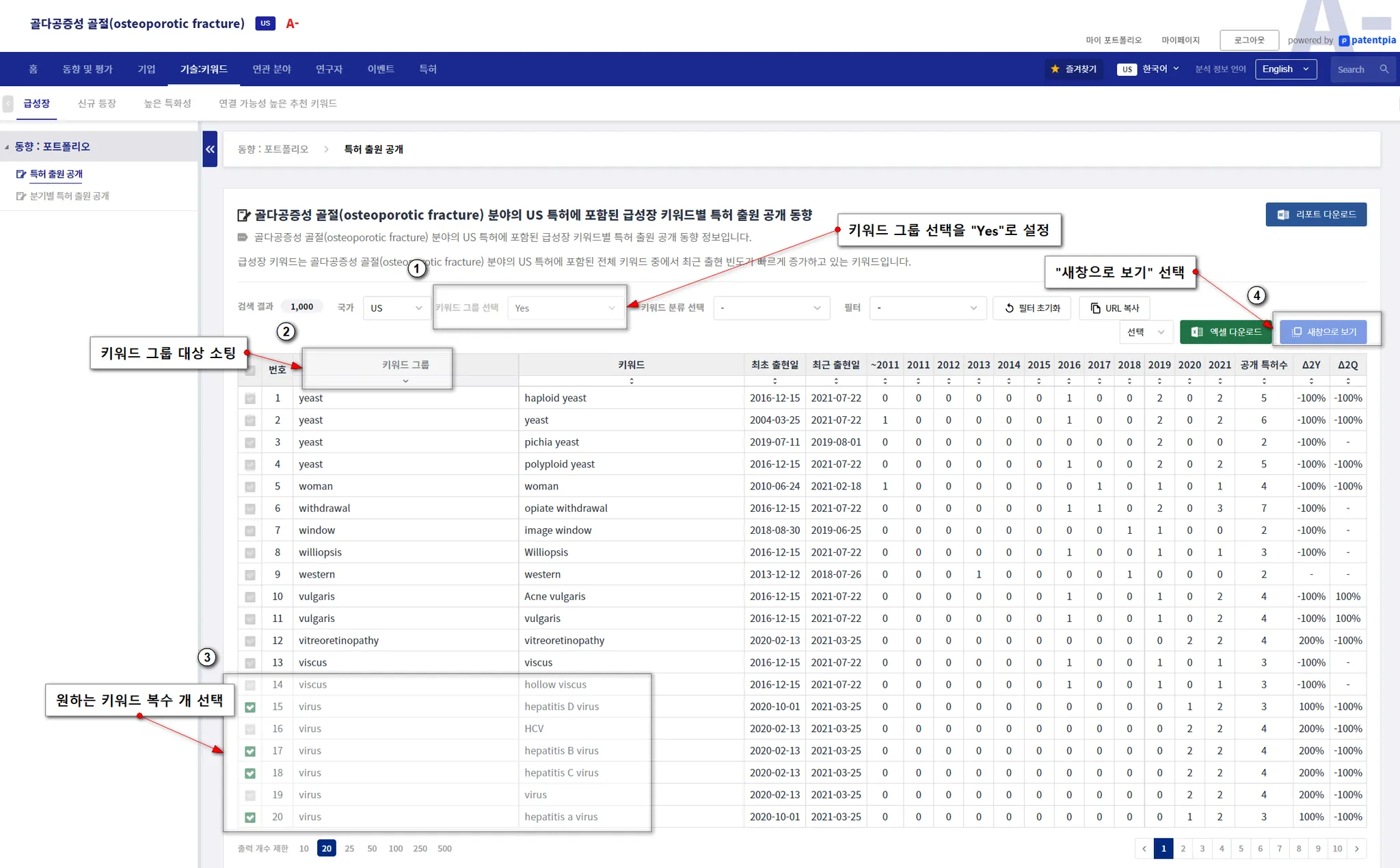 (1) 관심 선택 & "새창으로 보기" 클릭