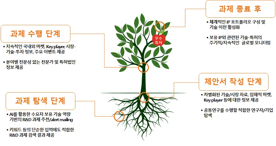 R&D의 기획/제안 단계뿐만 아니라, R&D 전 주기에 걸쳐 기술 집단 지성의 결집체인 글로벌 특허 데이터를 활용할 필요성이 높습니다.