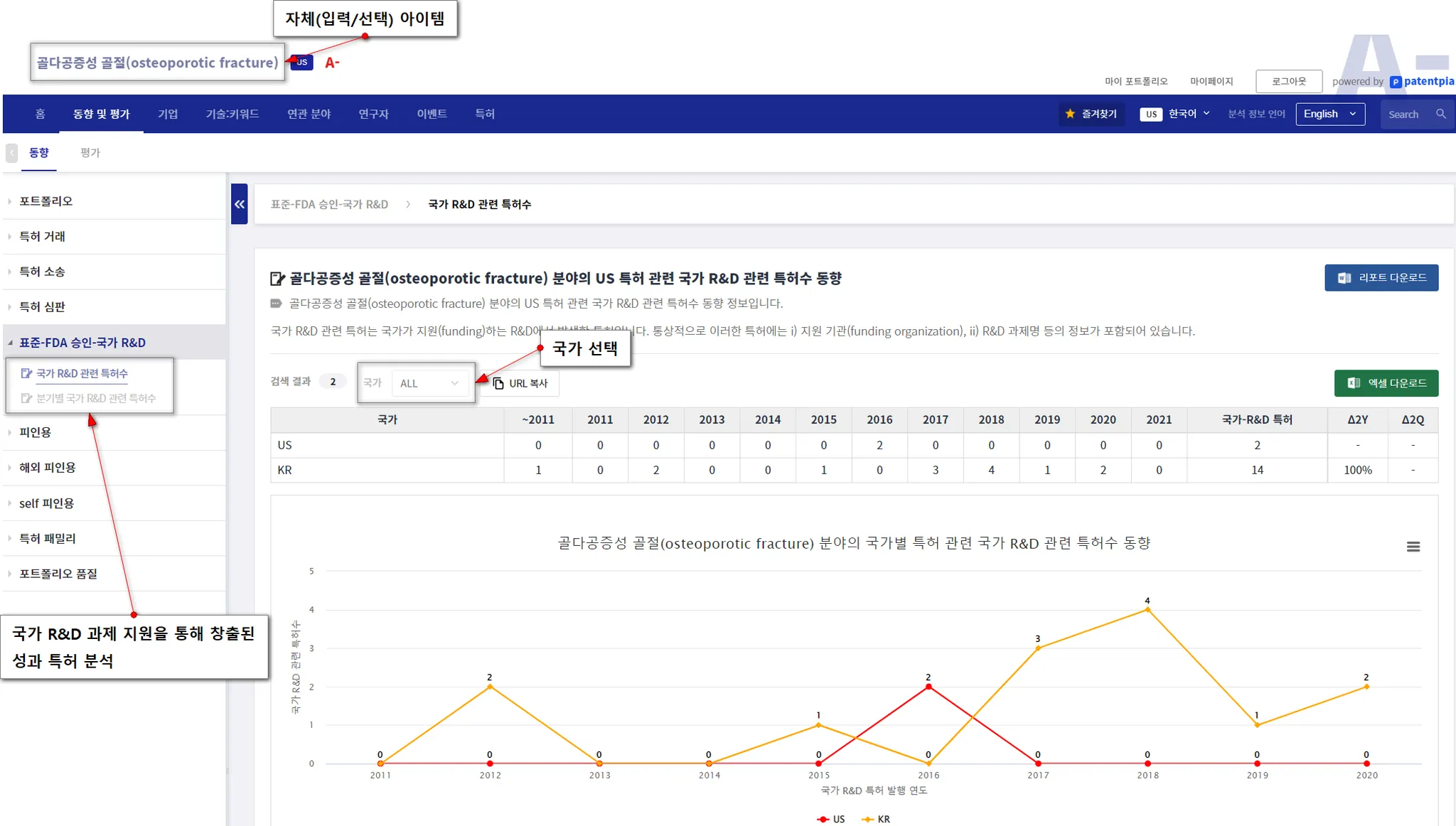 선도 국가(예, US 등)는 국가 R&D 과제 등을 통해서 R&D를 지원합니다. 국가 지원 R&D의 성과로 특허가 출원되고 공개됩니다. 선도 국가의 투자 분석은 국가 지원 R&D 성과 특허의 분석을 통해서 이루어집니다.