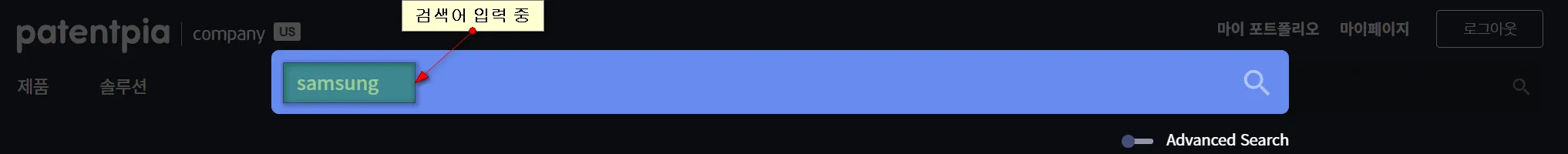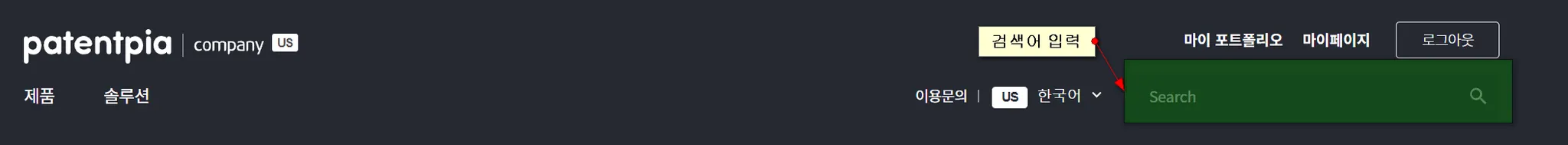 기업 명칭 입력을 통한 기업 검색은 화면 최상단에 있는 검색창에 기업명을 입력하세요.